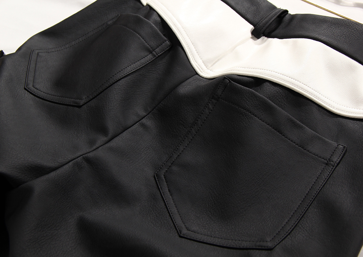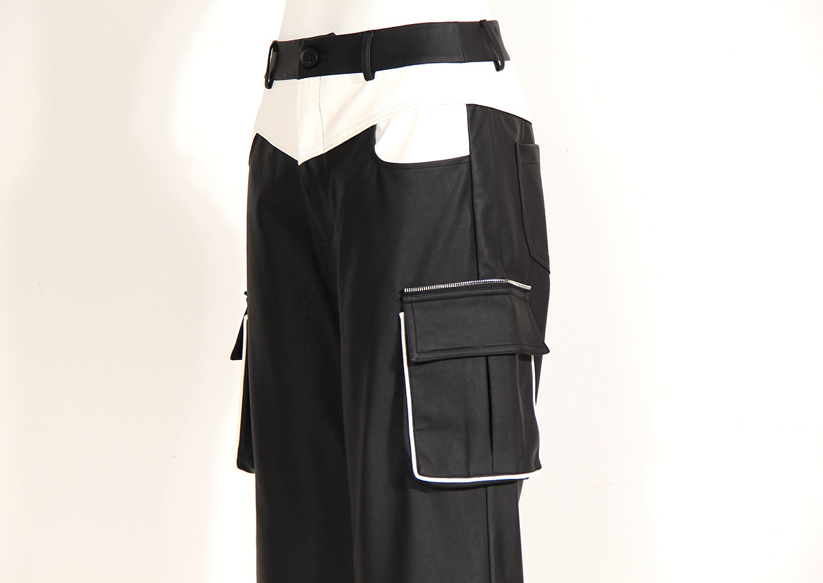 Deconstruction Niche Trousers Color Contrast Patchwork Three Dimensional Split Trousers Casual Pants Leather Pants