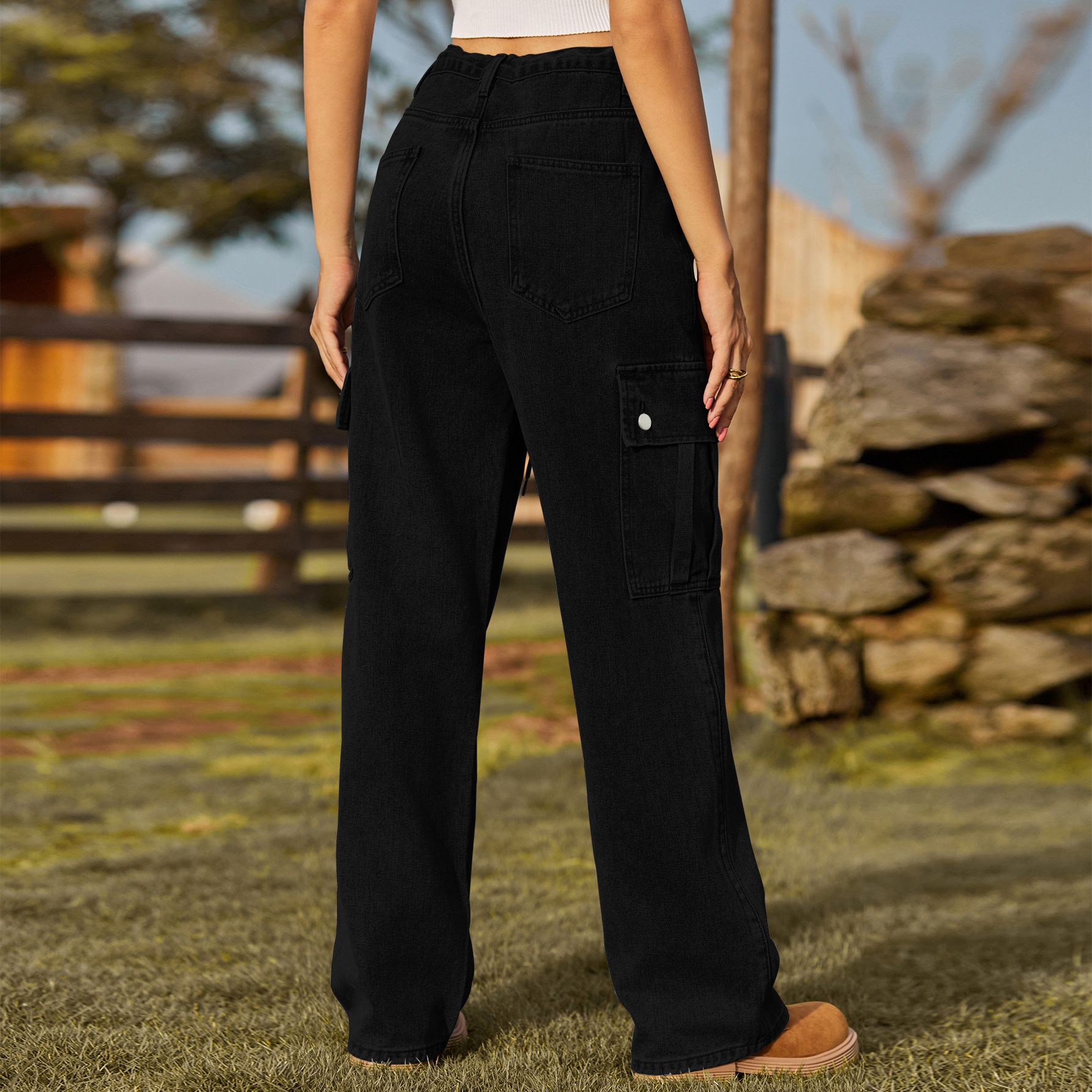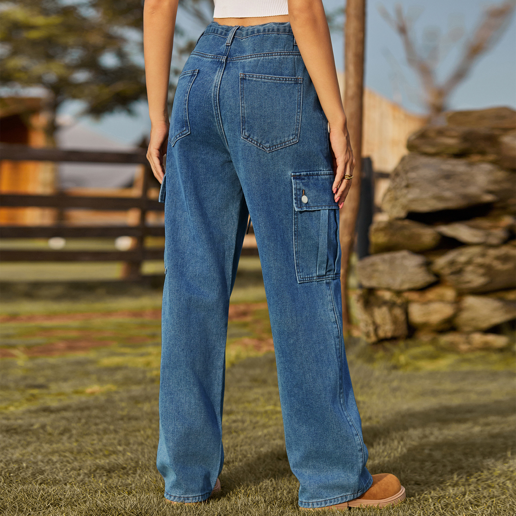 Denim Drawstring Adjustable Washed Cargo Pants Trousers Casual Pants