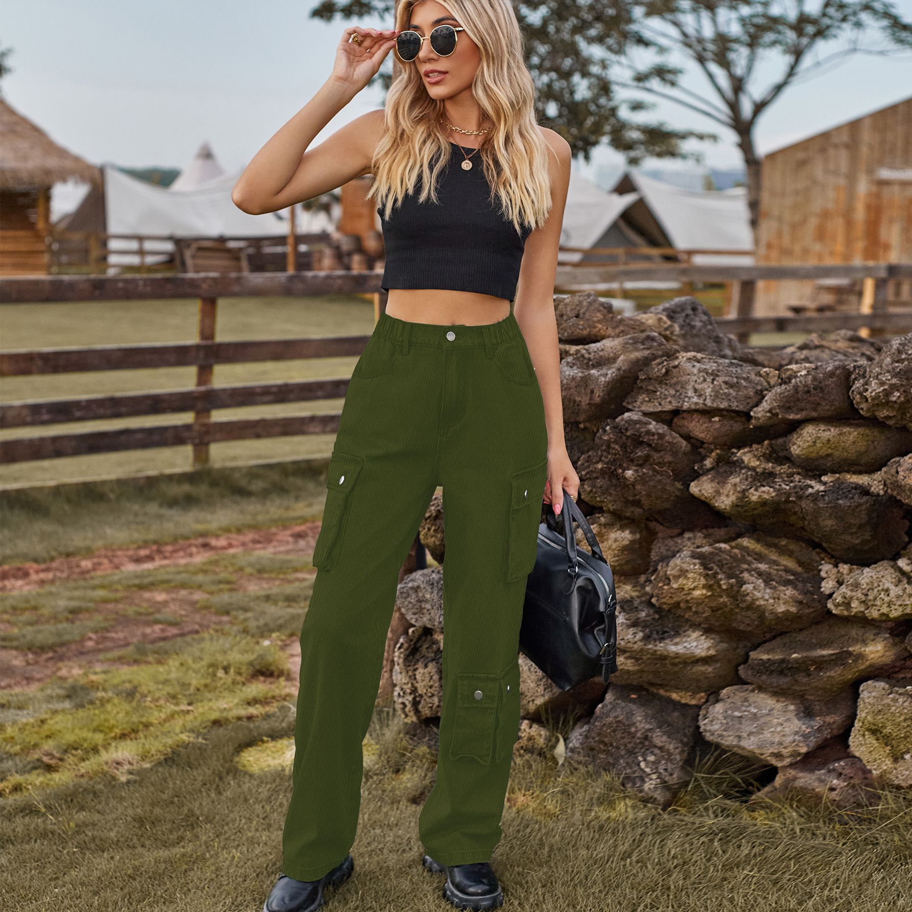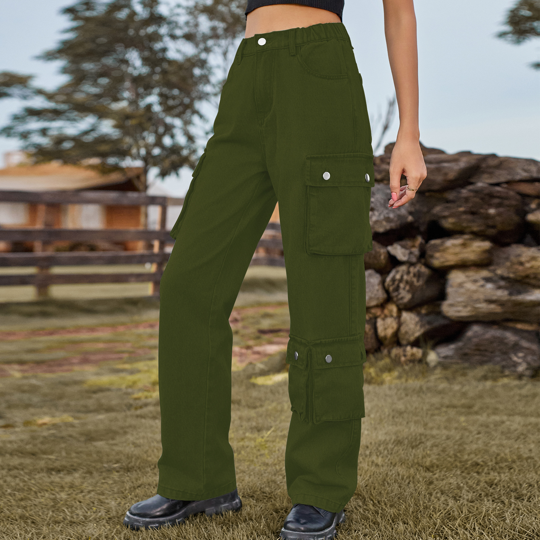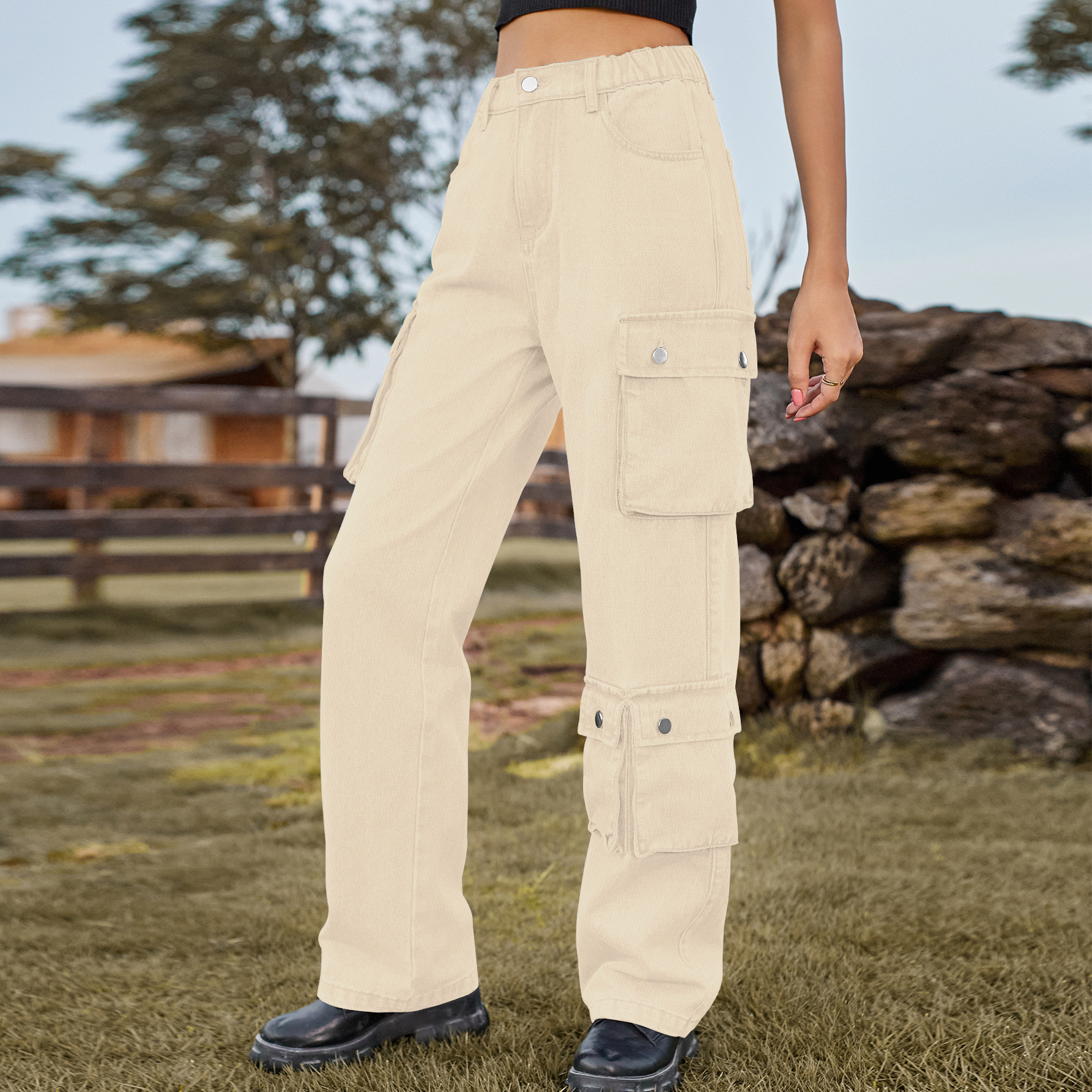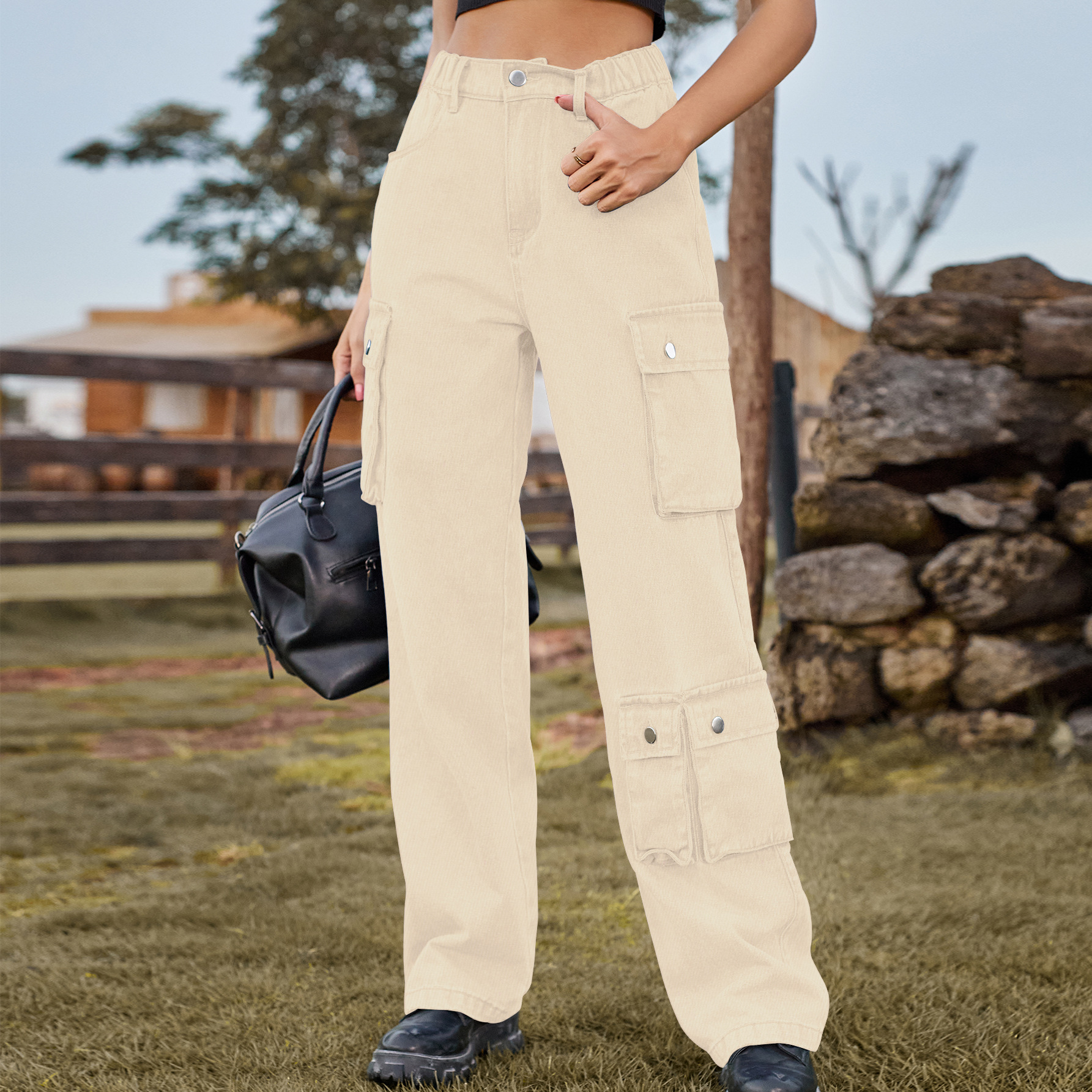 Denim Washed Multi Pocket Overalls Trousers Casual Pants