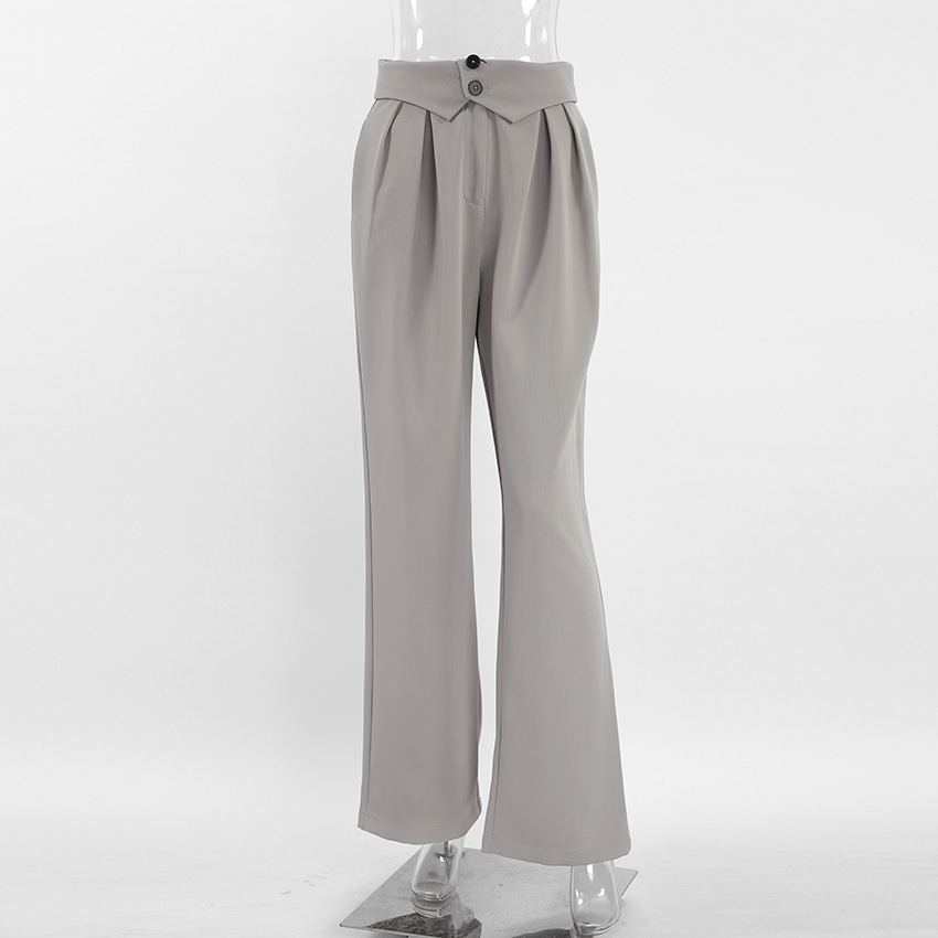 Design Pleated High Waist Straight Casual Pants French Office Draped Work Pant