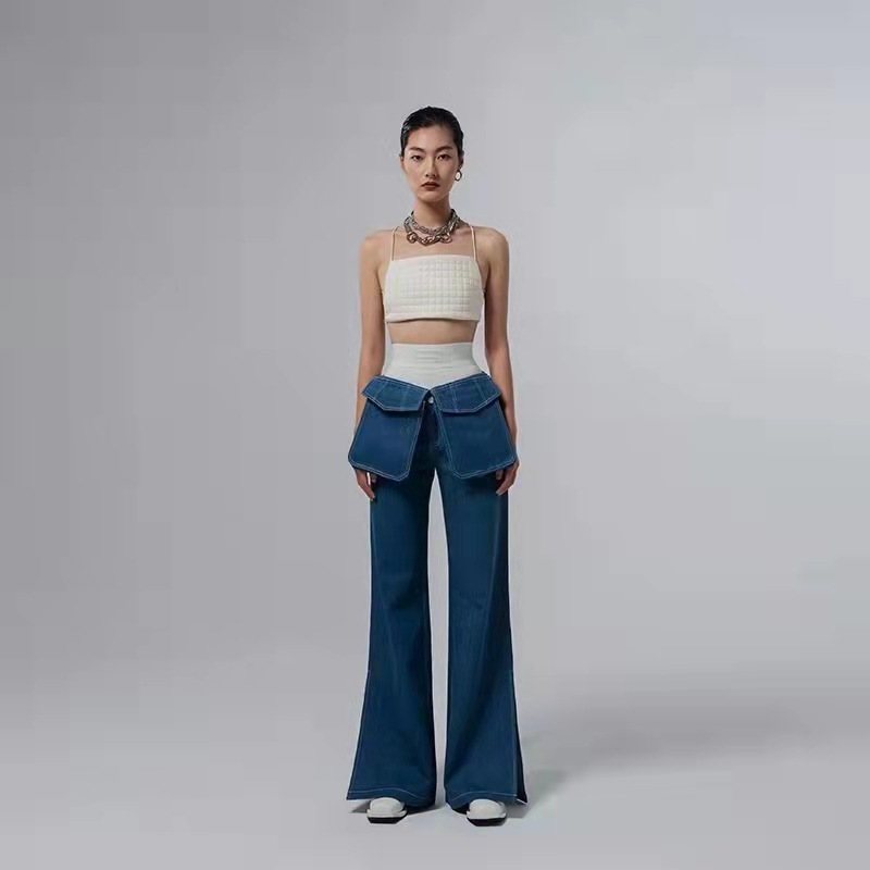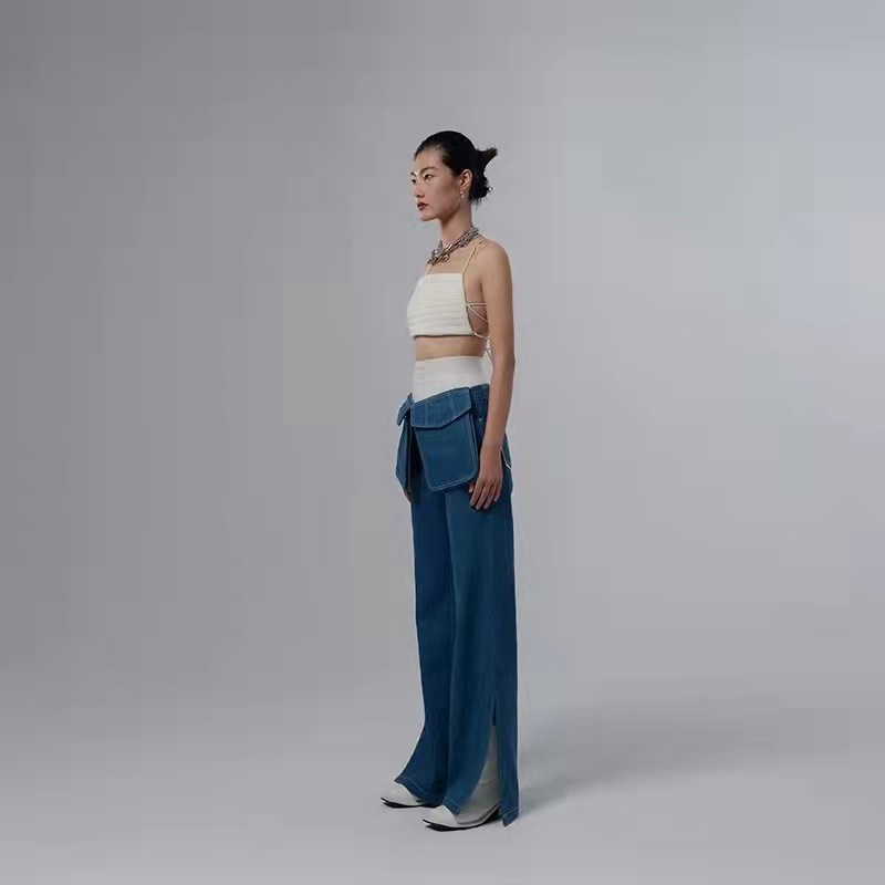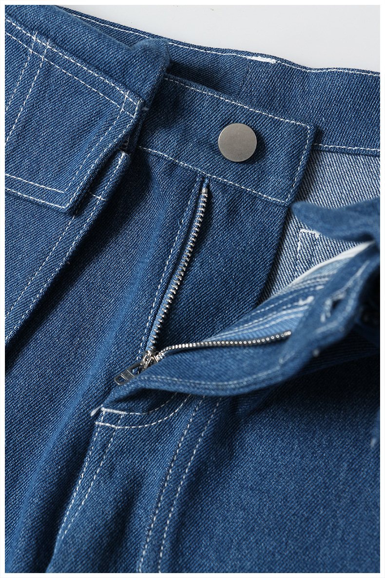 Detachable Pocket Personal Casual Mid Low Waist Straight Leg Pants Jeans