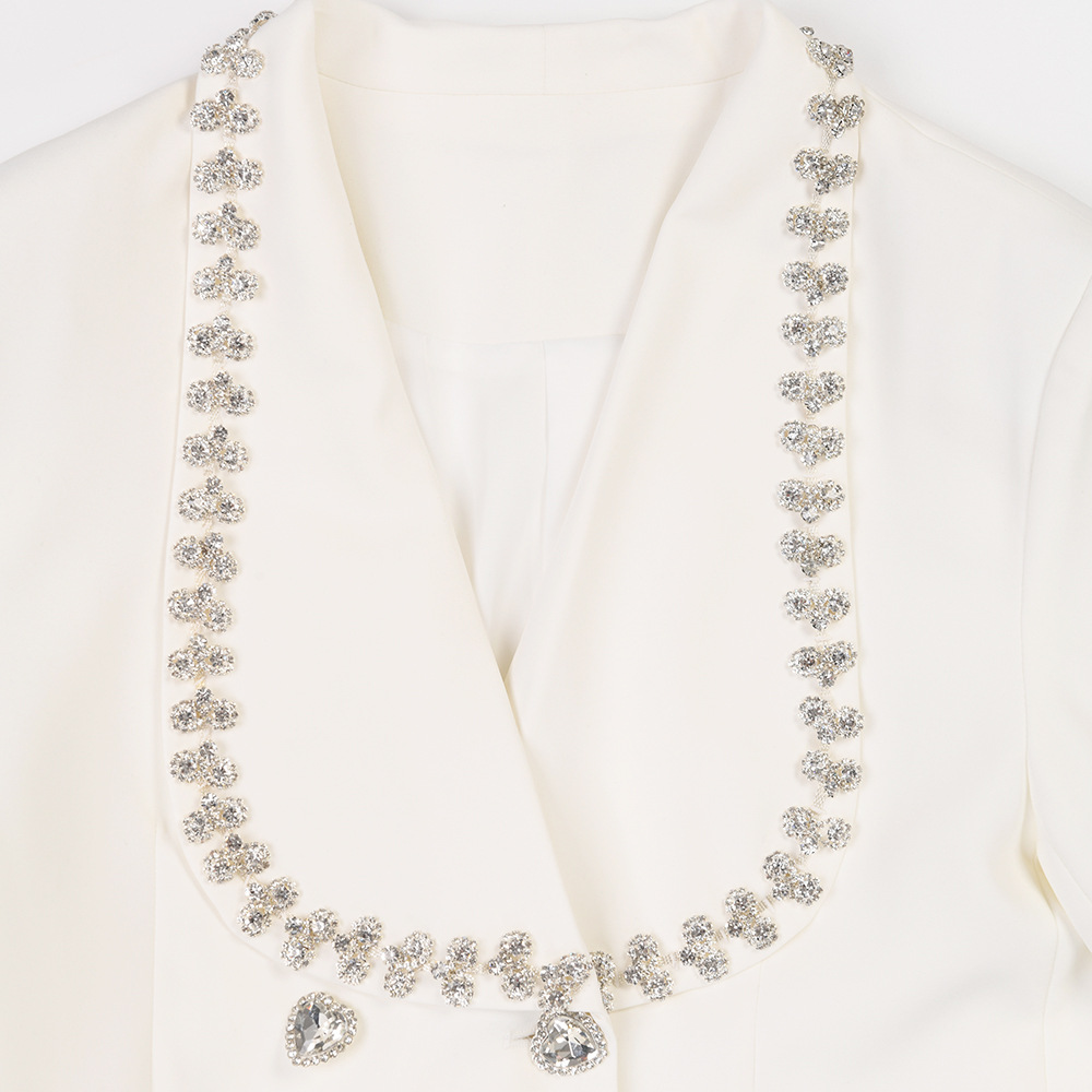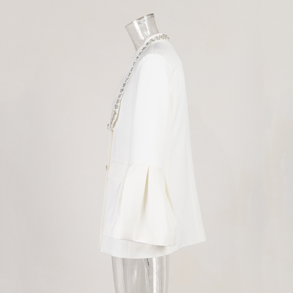 Diamond Beaded Waist Trimming Coat White Chanel Blazer