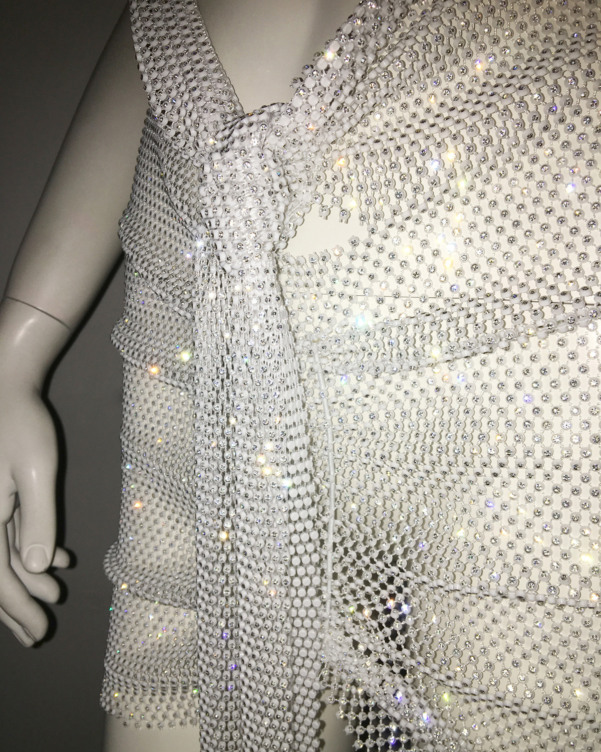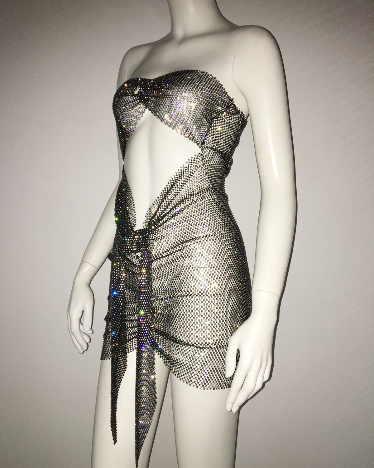 Element: Rhinestone.Lace/Tulle/Fishnet.Cutout.Ruched.Tie
