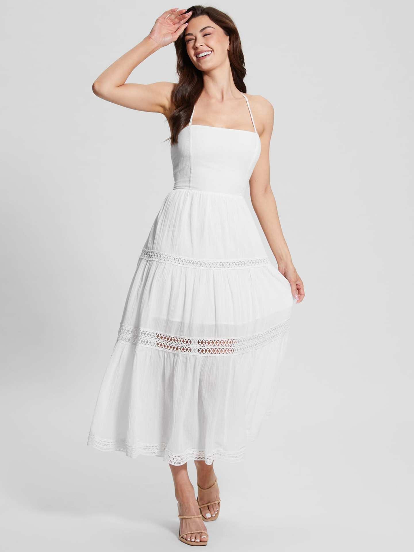 Dress Lace up Backless Maxi Dress White Hollow Out Cutout Out Lace Cami Dress Dress