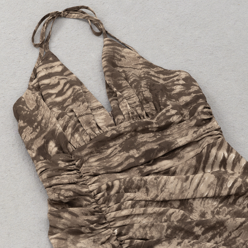 Dress Retro Halter Lace up Backless Front Slit Slim Dress