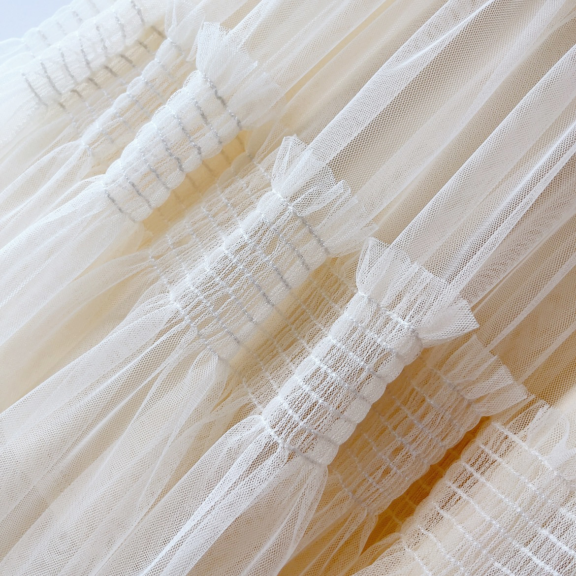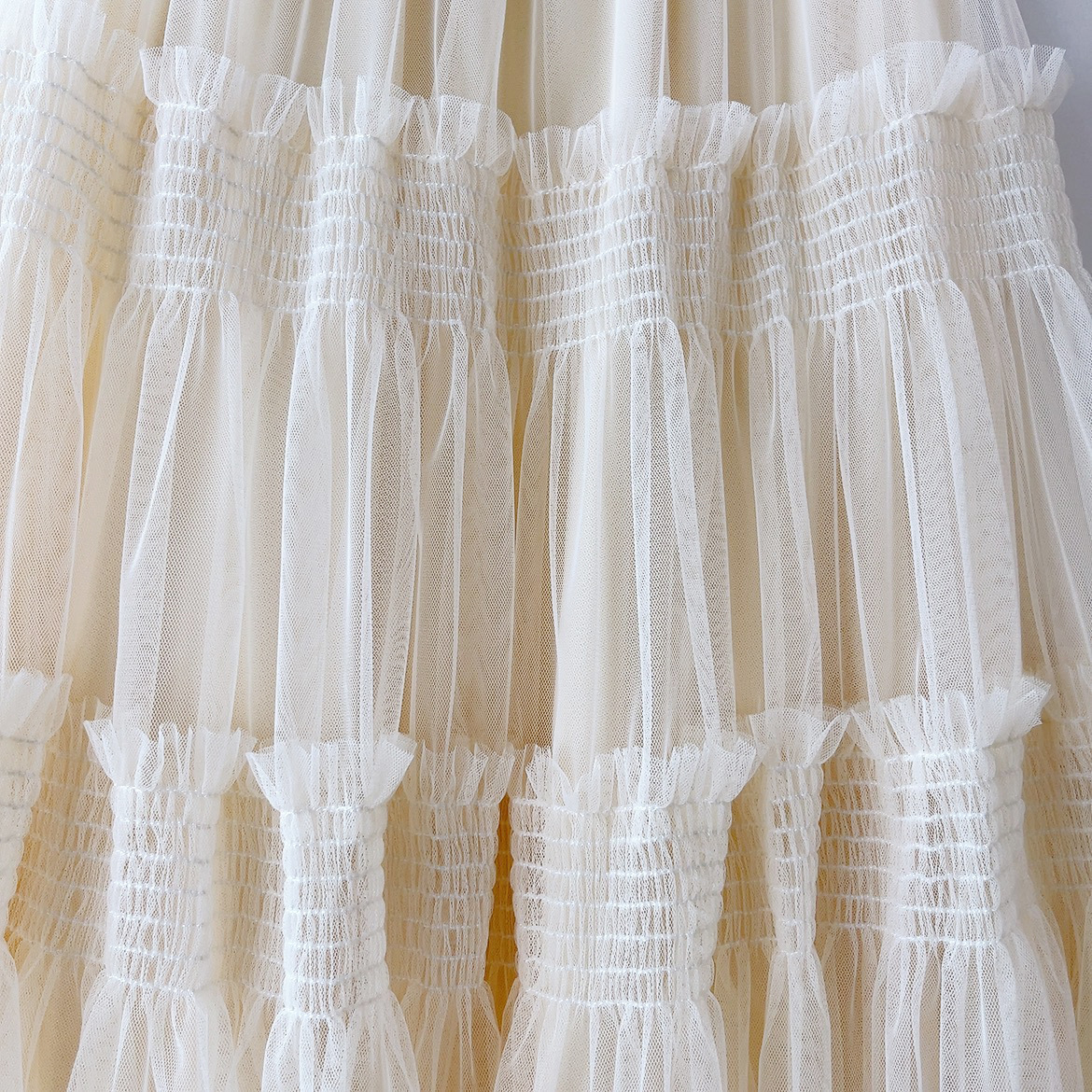 Dress Retro Tiered Dress Slimming Gauze Skirt with Wooden Ear Wide Hem Gauzy Skirt