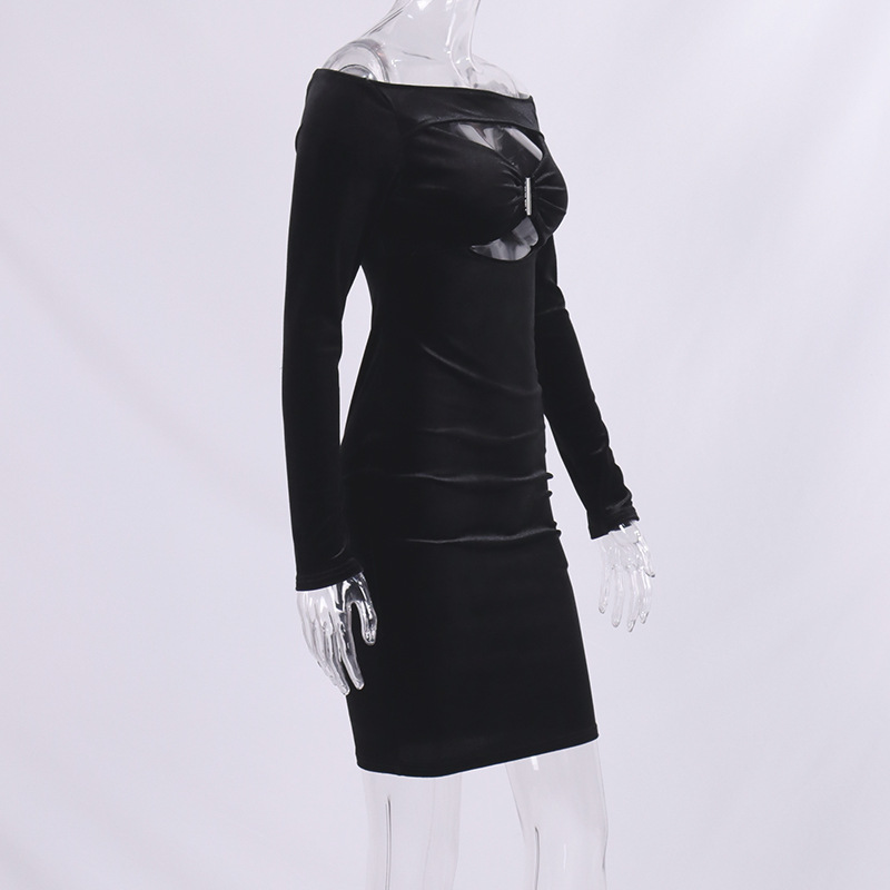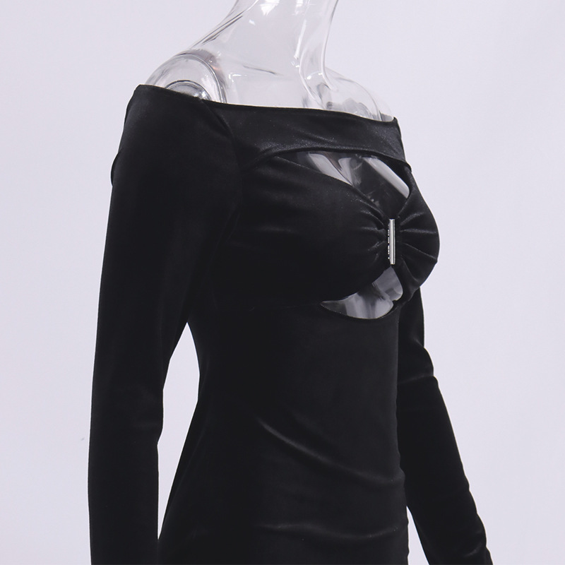 Dress Velvet Hollow Out Cutout off-Neck Sheath Dress