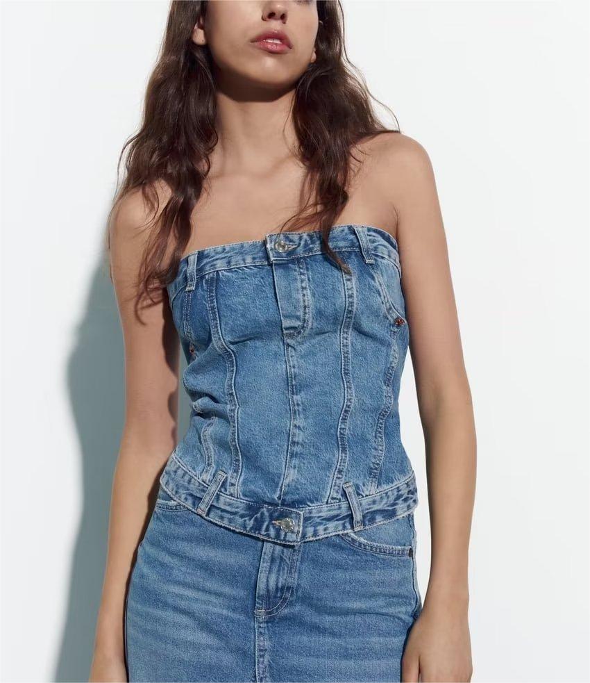 Elastic Corset Denim Top