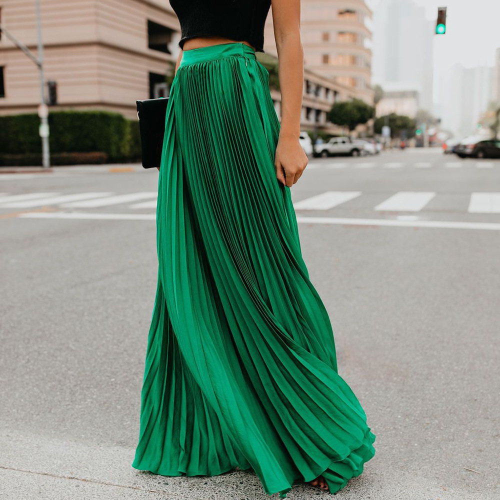 Elegant Pleated Mopping Solid Color Wide Hem Skirt