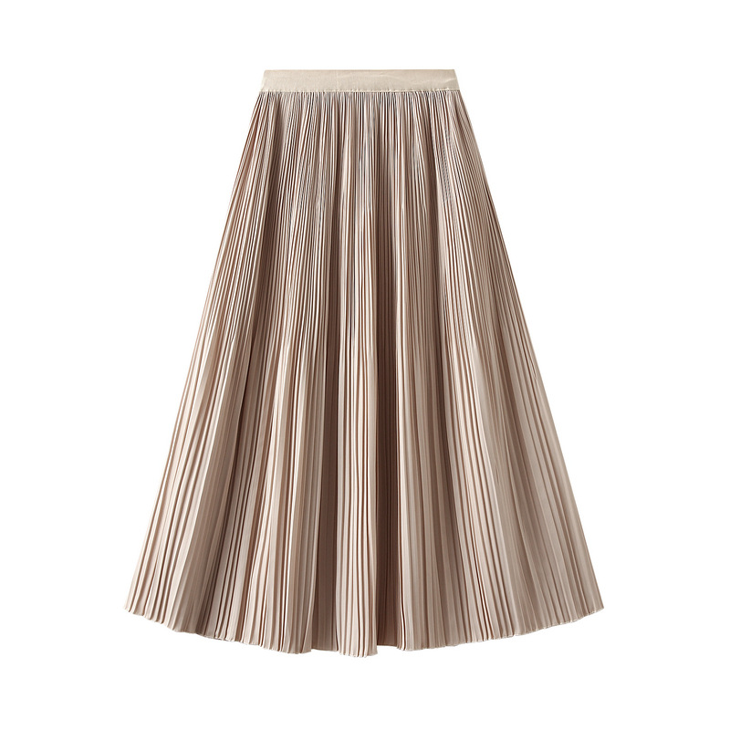 Elegant Pleated Skirt Double Pleated Draping Slimming Mid Length Pleated Skirt