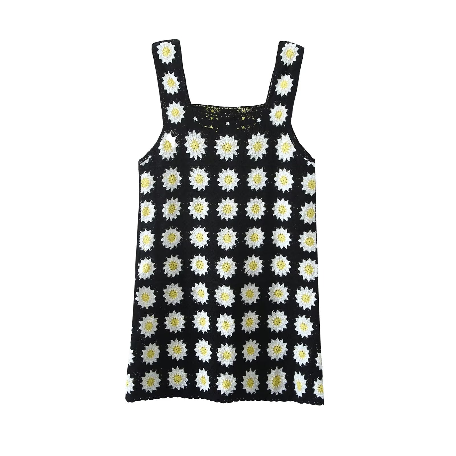 Elegant Square Collar Sleeveless Printed Pullover Sling Knitted Dress