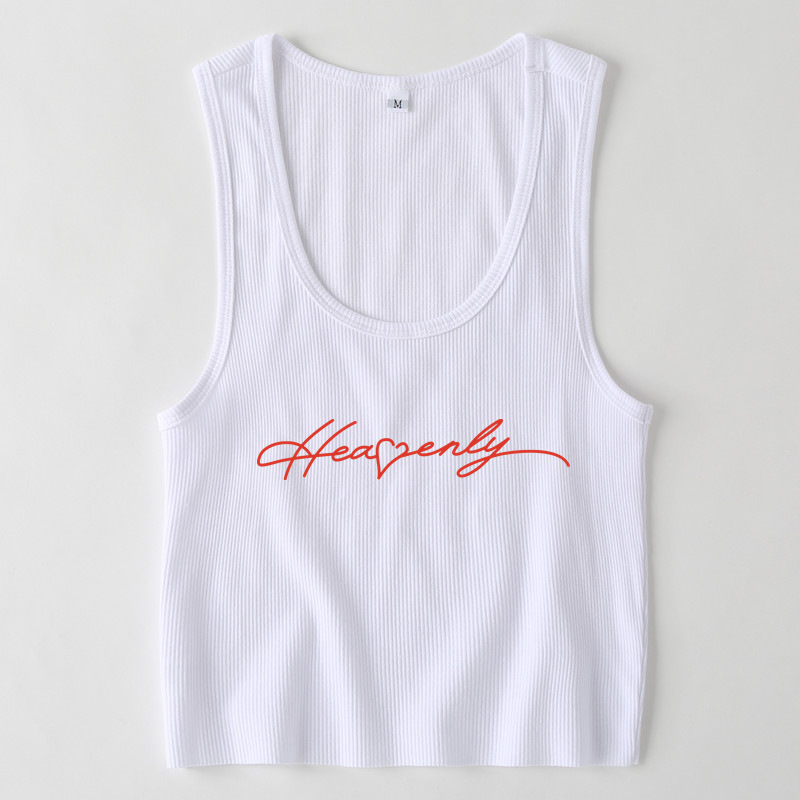 English Letter Graphic Printed cropped Short Slim-Fit Tank Top Bottoming Shirt