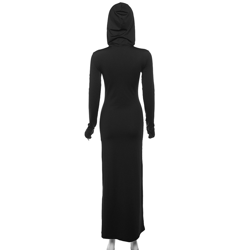 Fall Slit High Waist Slim Fit Hood Maxi Dress