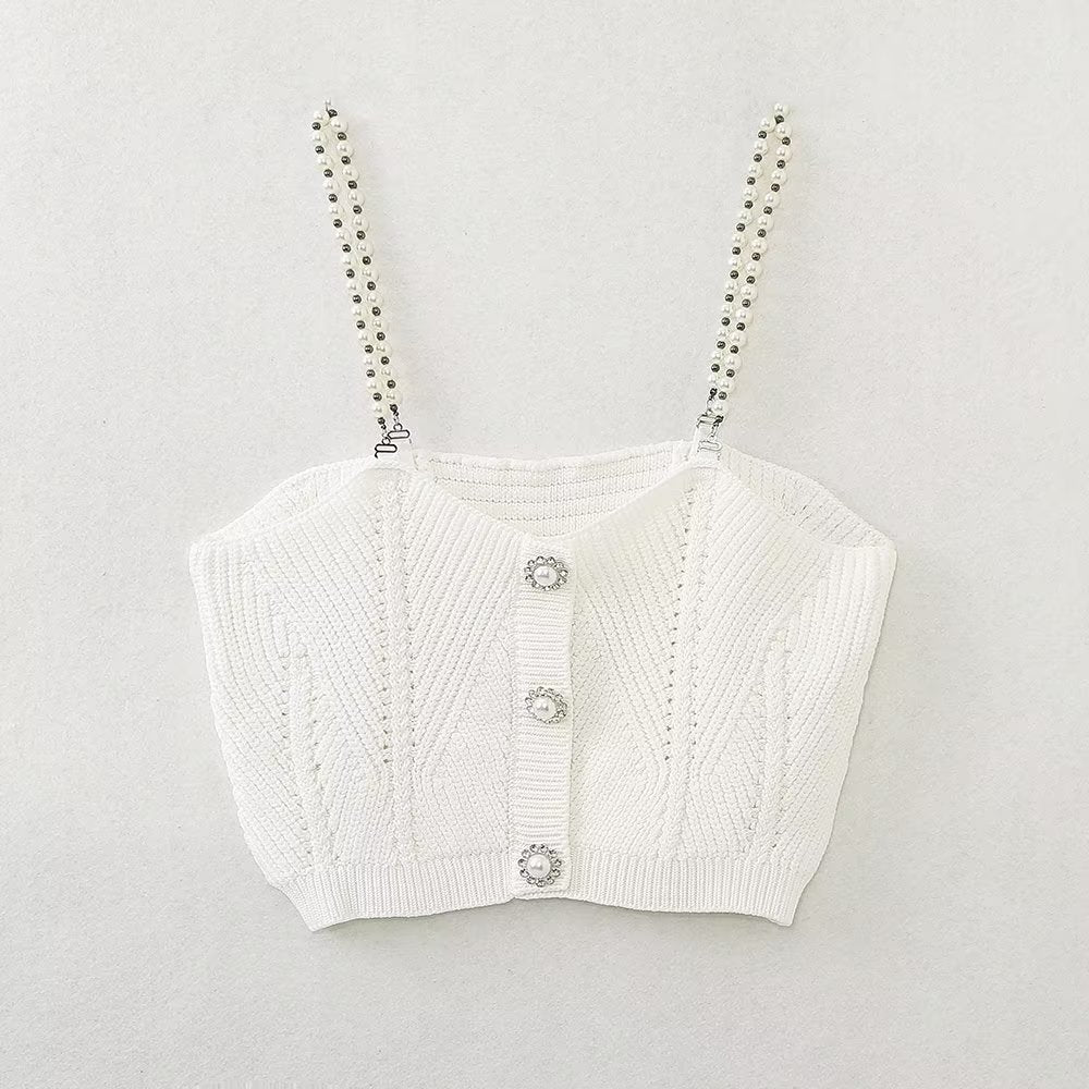 Fall Solid Color Small Sling Pearl Chain Knitted Tube Top Vest