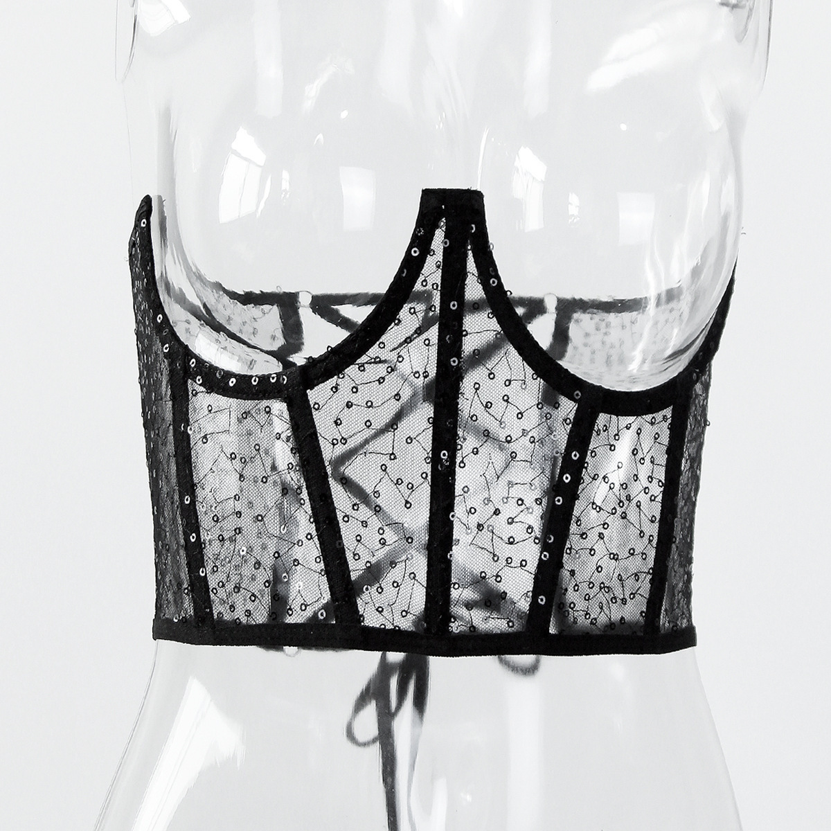 Fashionable Outerwear Street Vest Sequin Girdle Steel Ring Boning Corset Lace Up Slim Fit Girdle