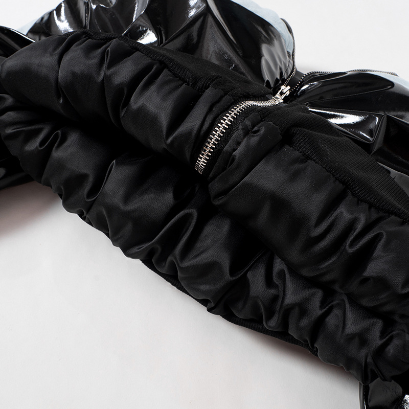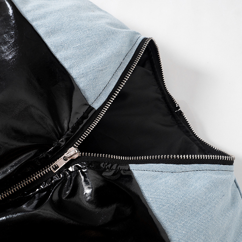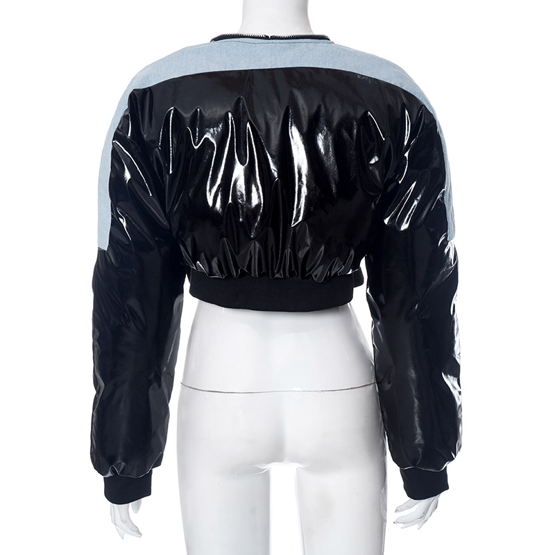 Faux Denim Stitching Faux Leather Long Sleeve Short Cotton Jacket Thick Upper Garment