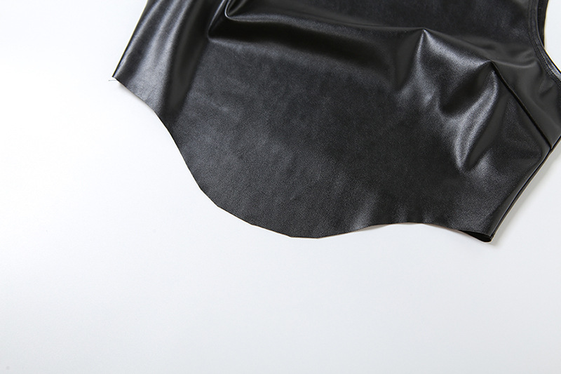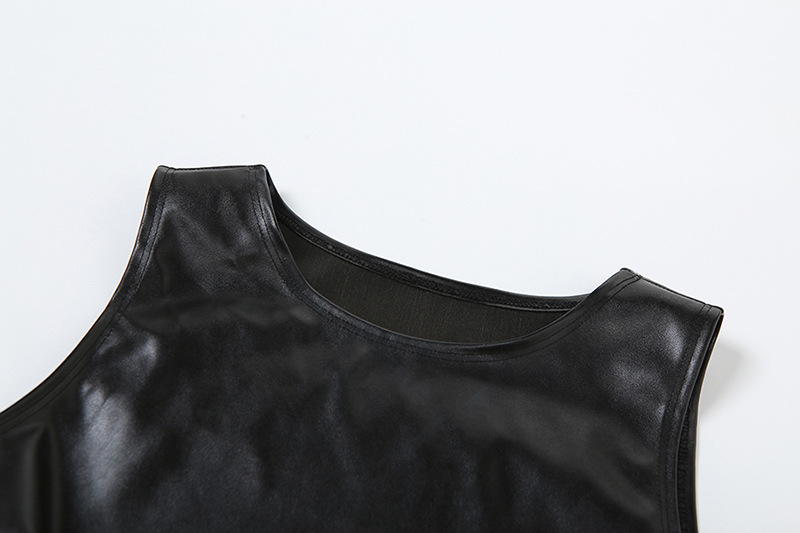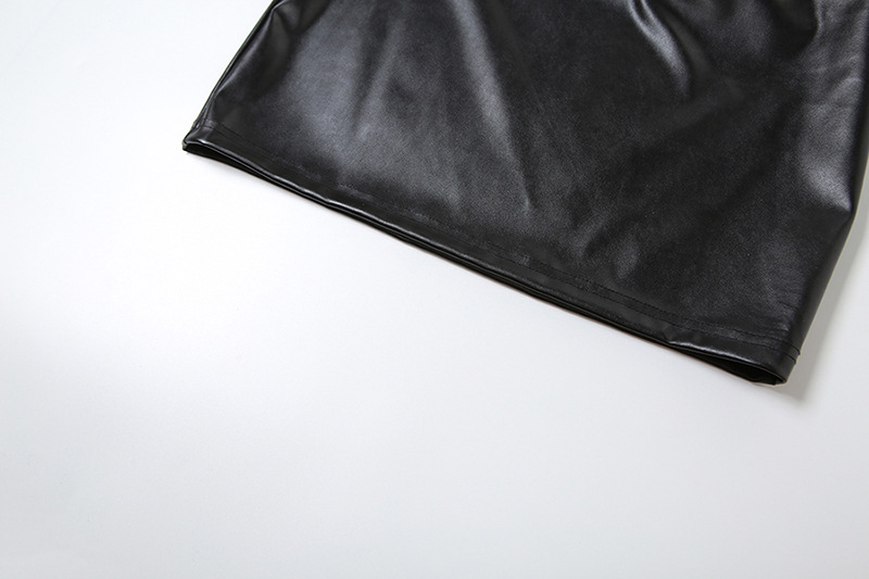 Faux Leather Sleeveless Vest Hip Skirt Sets