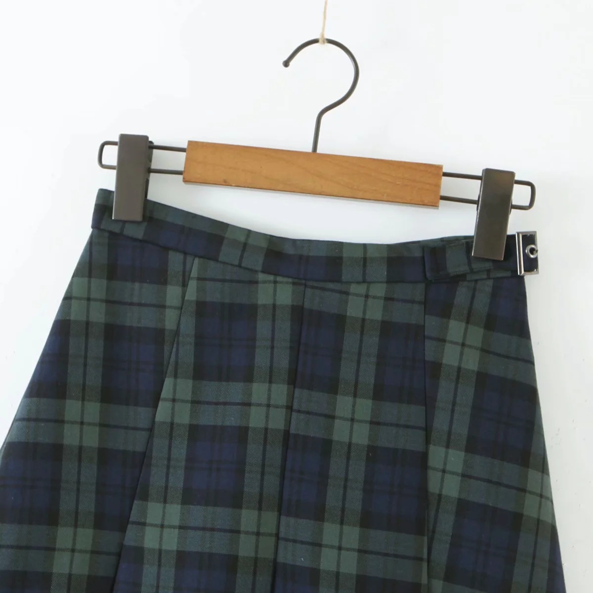 Four Seasons A Line Scottish Plaid Elastic Four Colors With Zipper Cotton Pleated Base Short Pantskirt