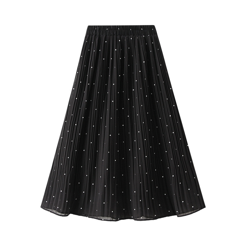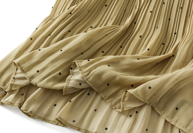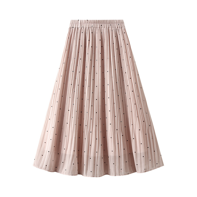 Fresh Small Polka Dot Chiffon Pleated Skirt Polka Dot Pleated High Waist A Line Midi Skirt