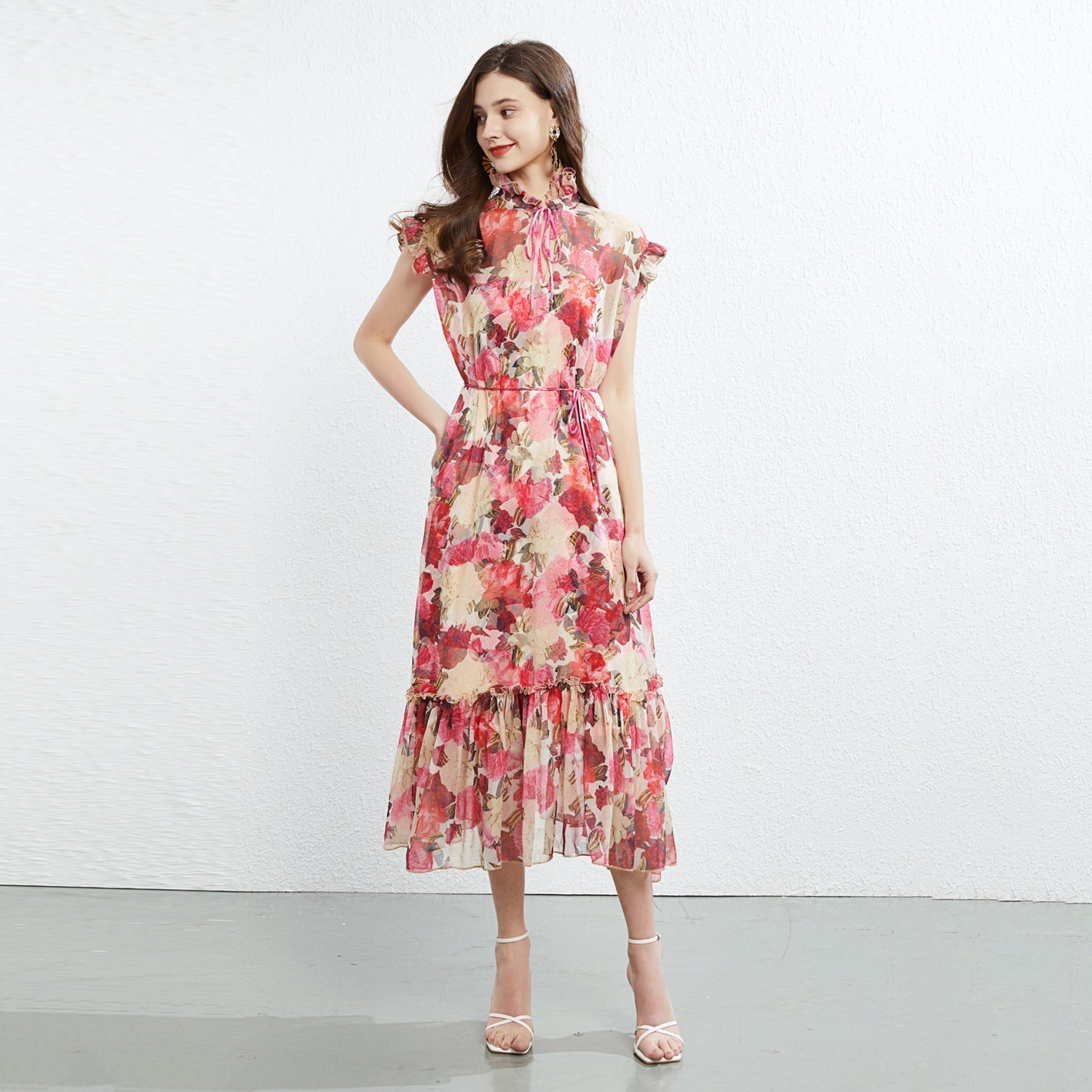 Fungus Lace Collar Sleeveless Dress Two Piece Printed Elegant Silk Crepe Dress