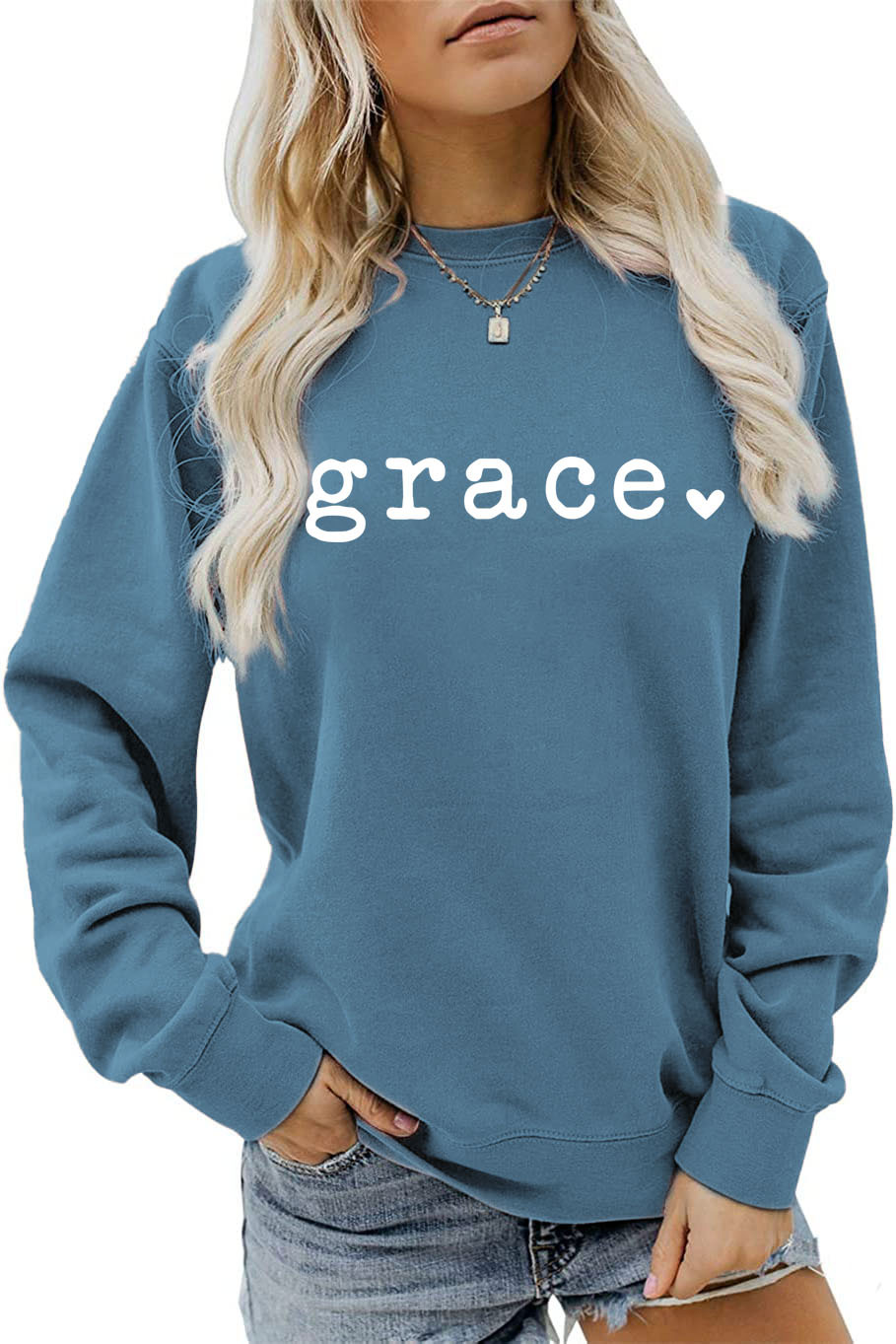 Grace Love Letter Graphic Loose Bottoming Casual Top Long Sleeve Sweater