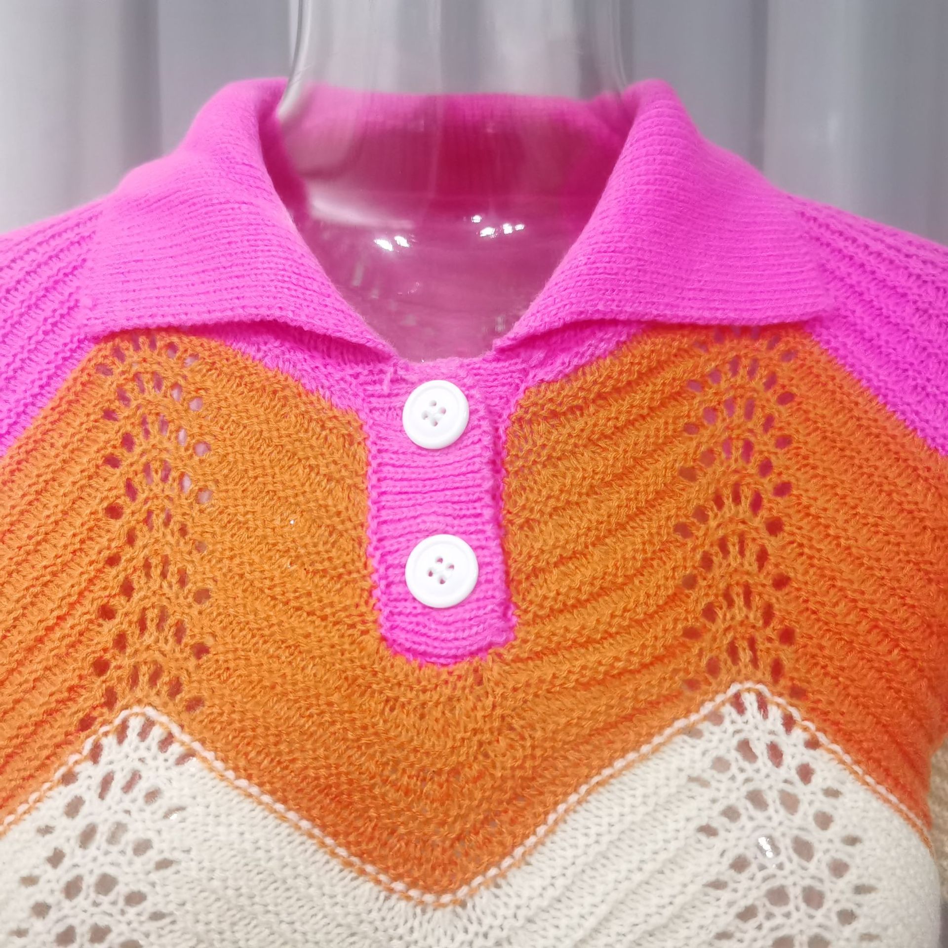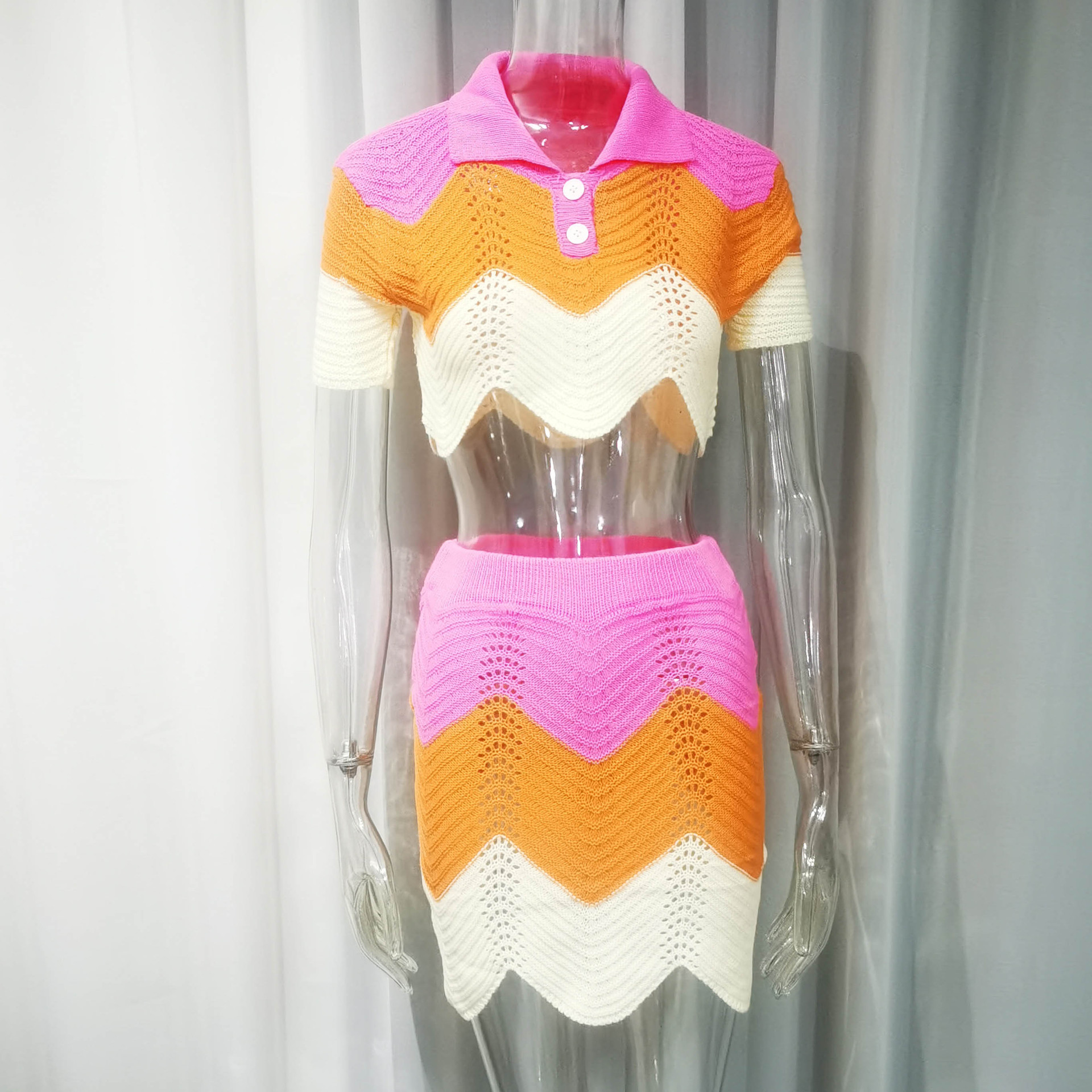 Gradient Color Wave Pattern Slim Hollow Out Cutout Short Sleeve
