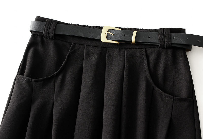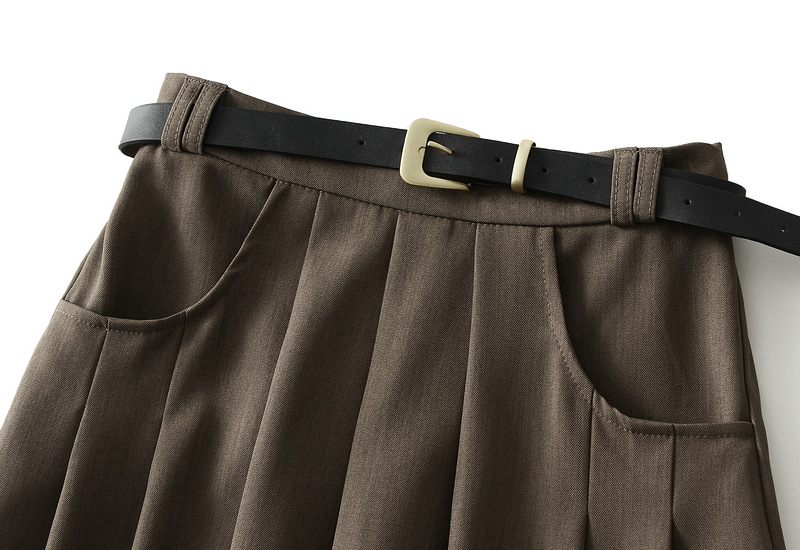 Half Length Skirt Preppy Half Length Pleated Skirt with Belt