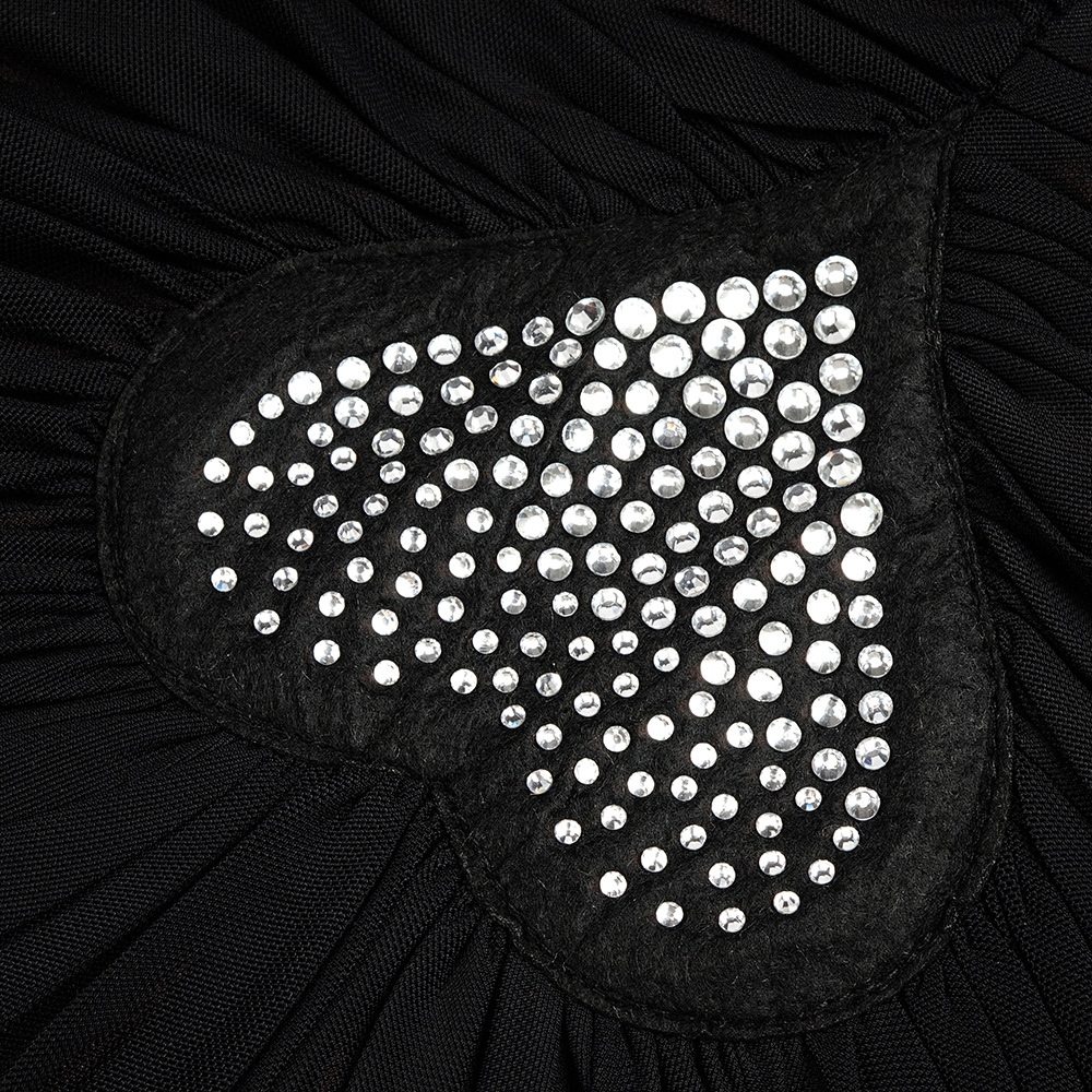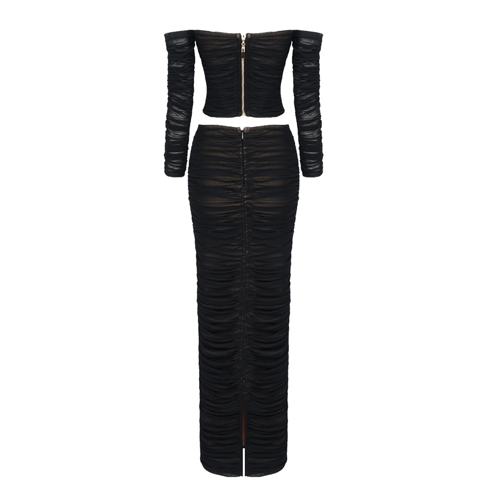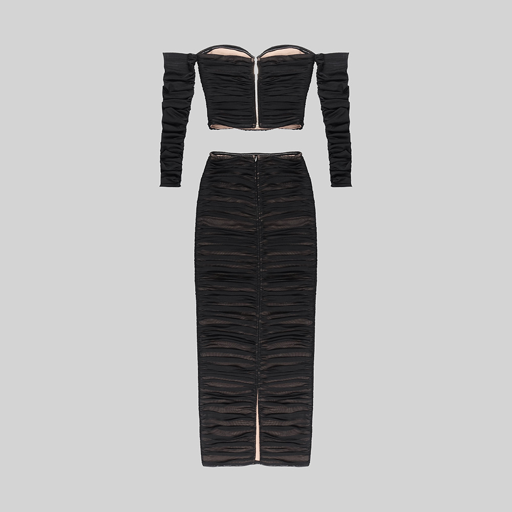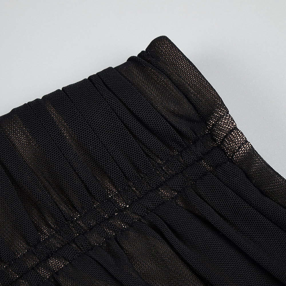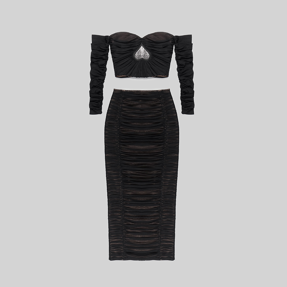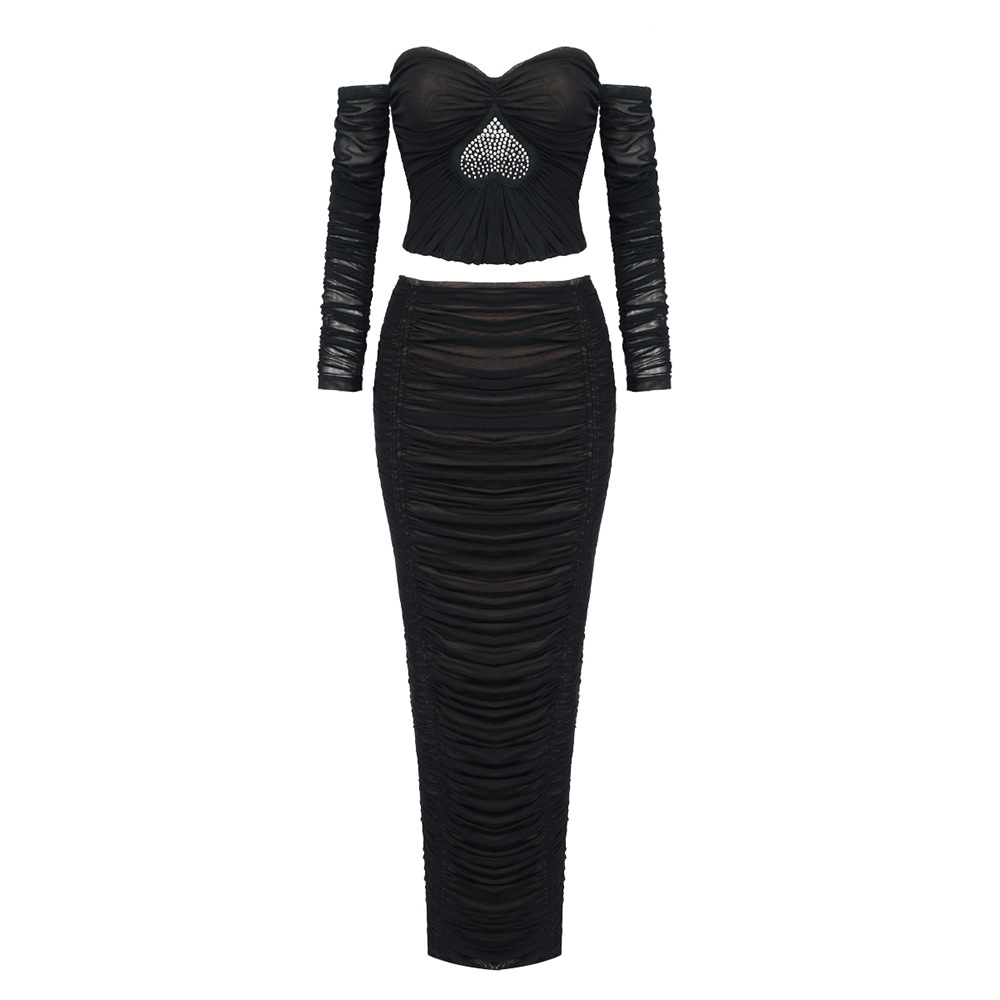 Heavy Industry Heart Shaped Rhinestone Pleated Two Piece Mesh Bandage Skirt Set