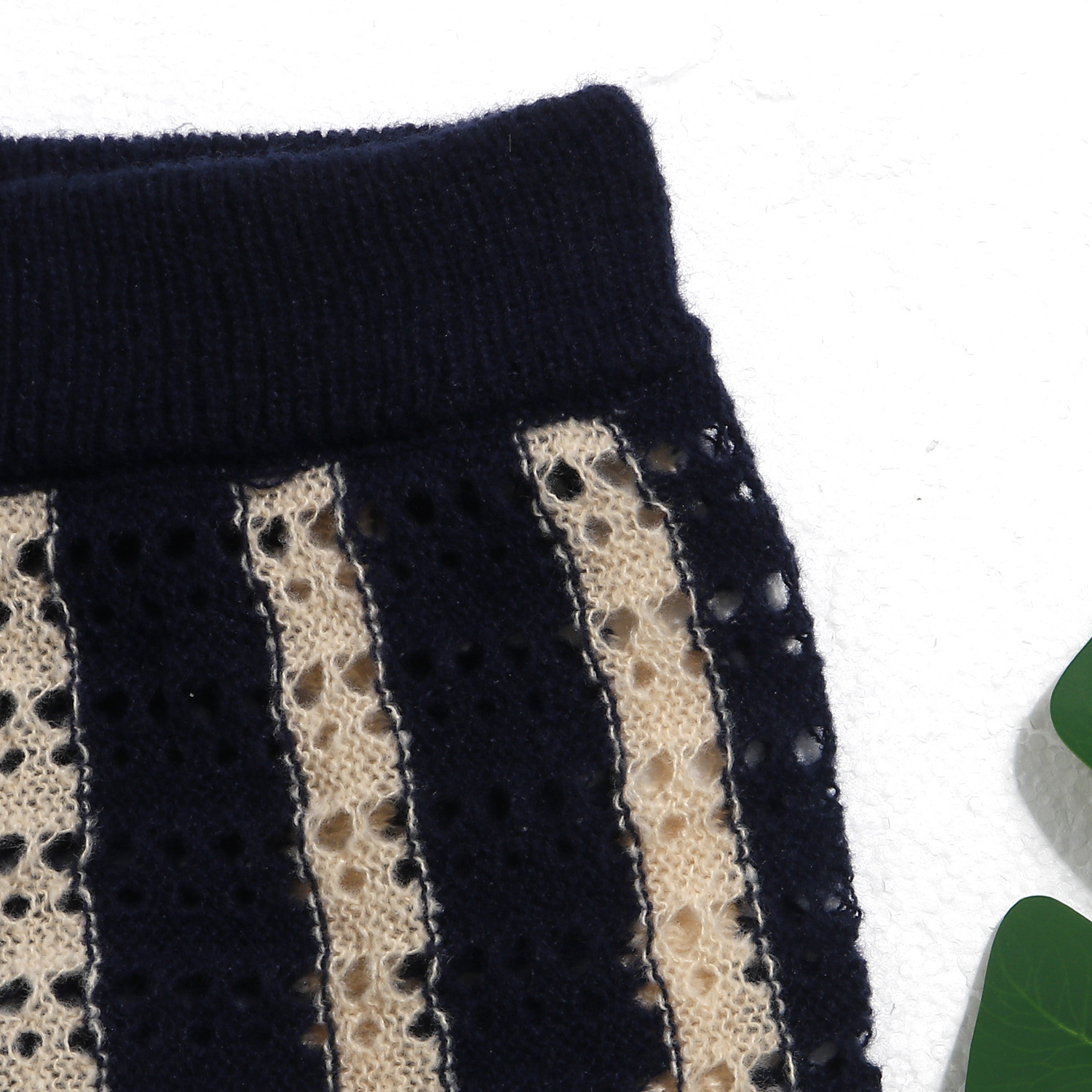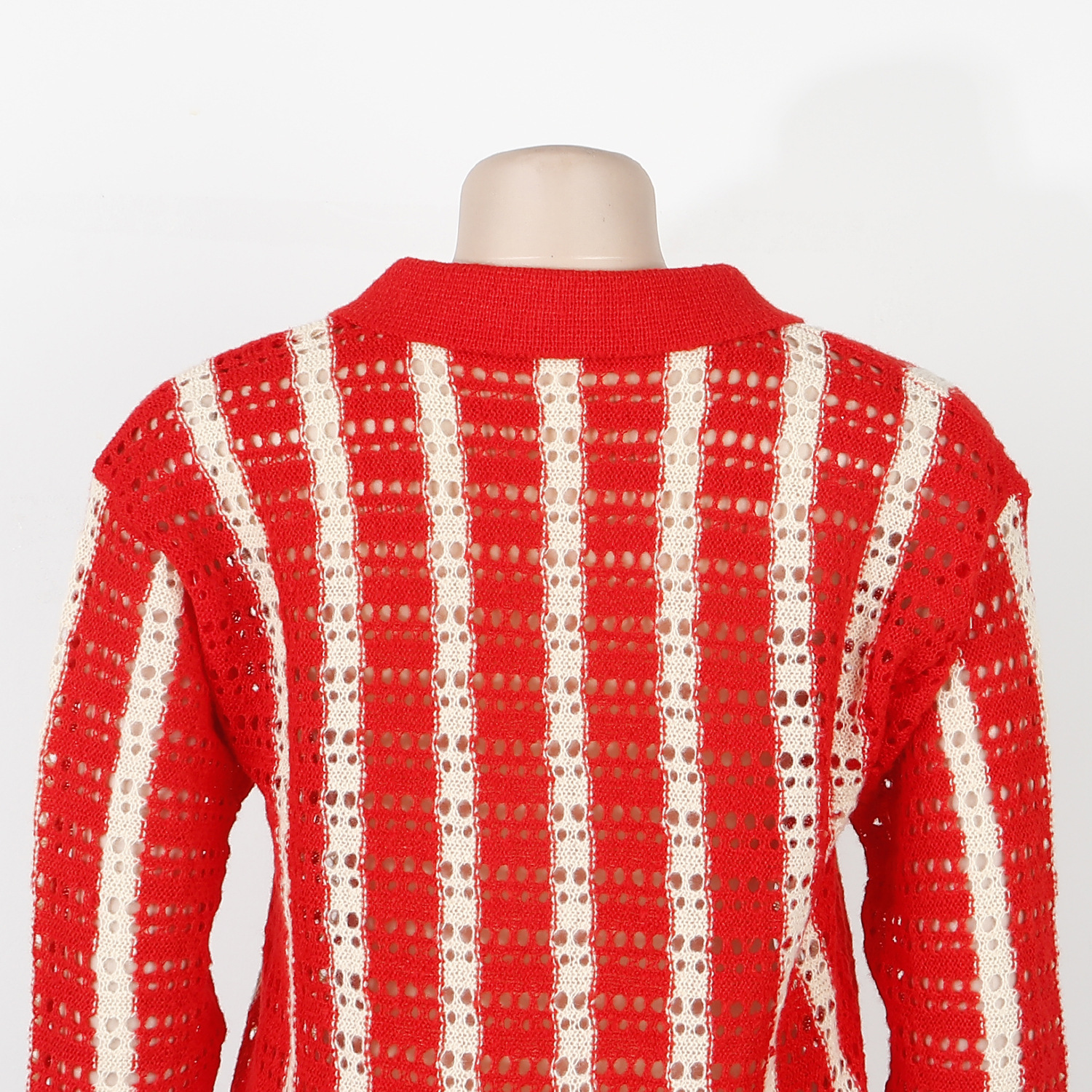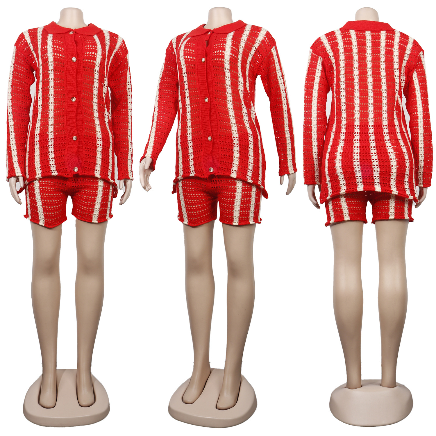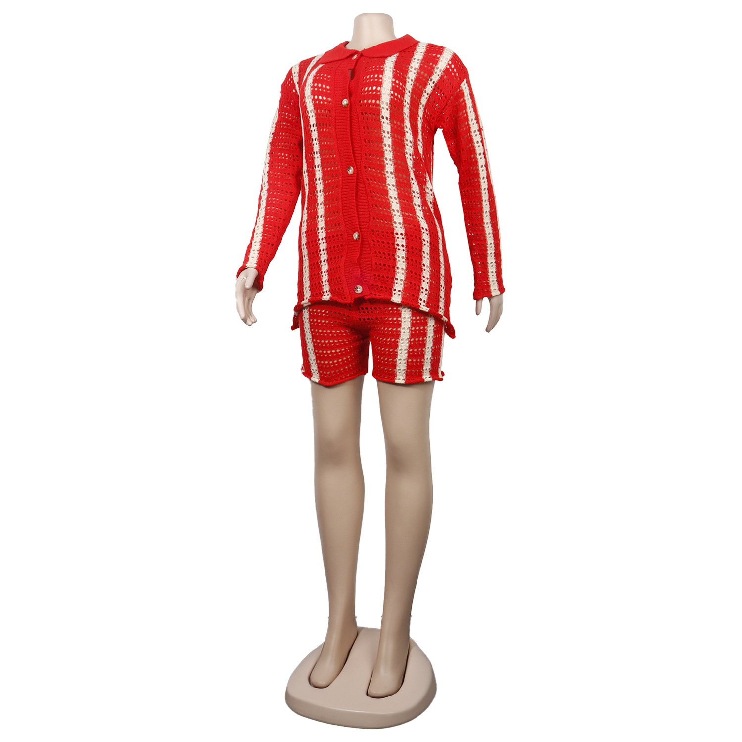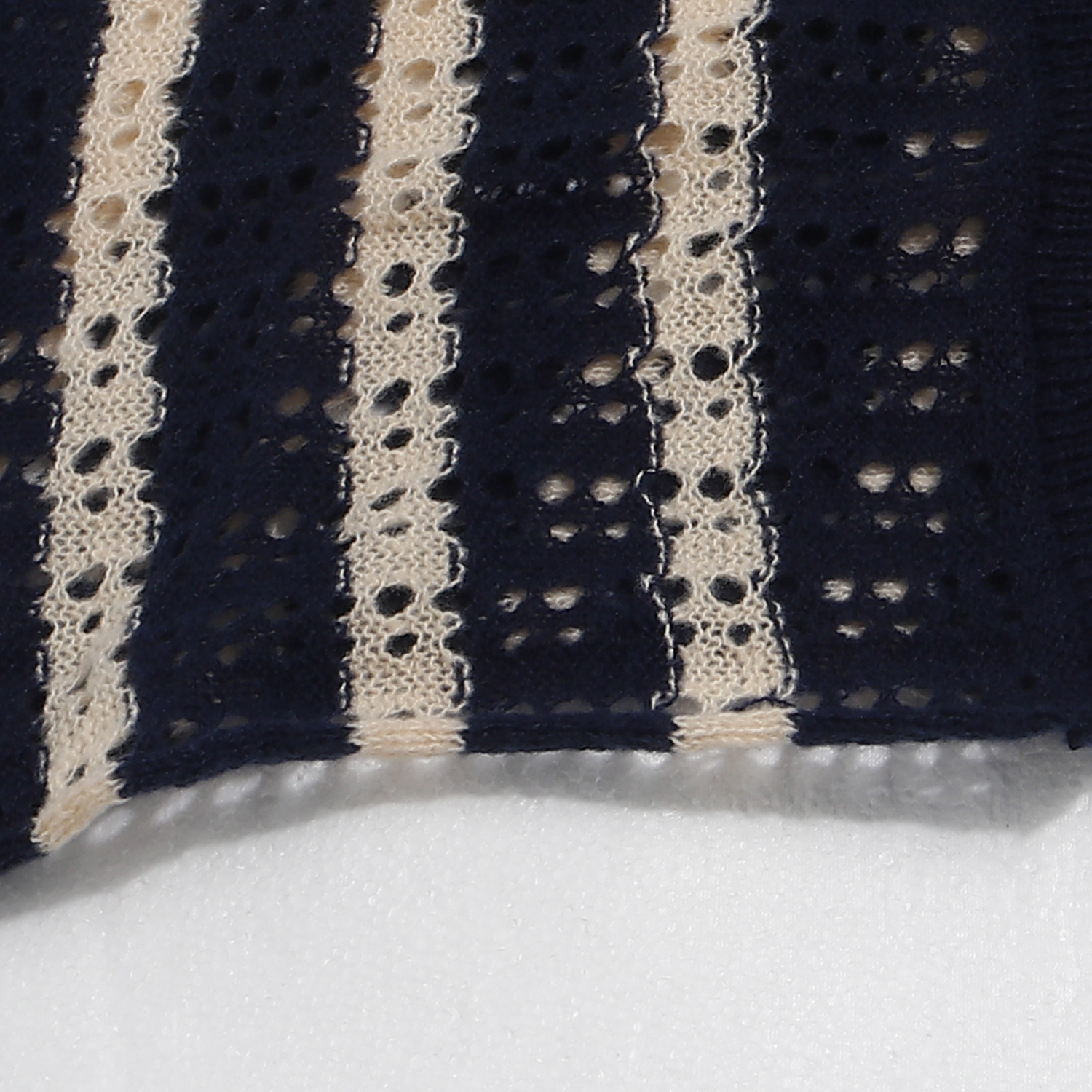 High Collared Slim Cardigan Button Stripe Two Piece Sweater