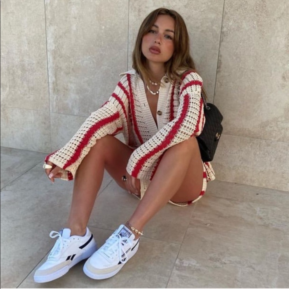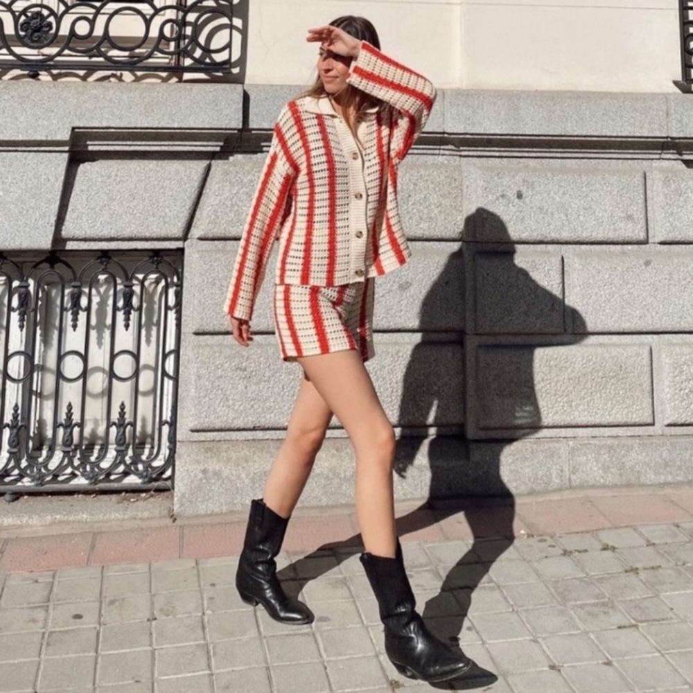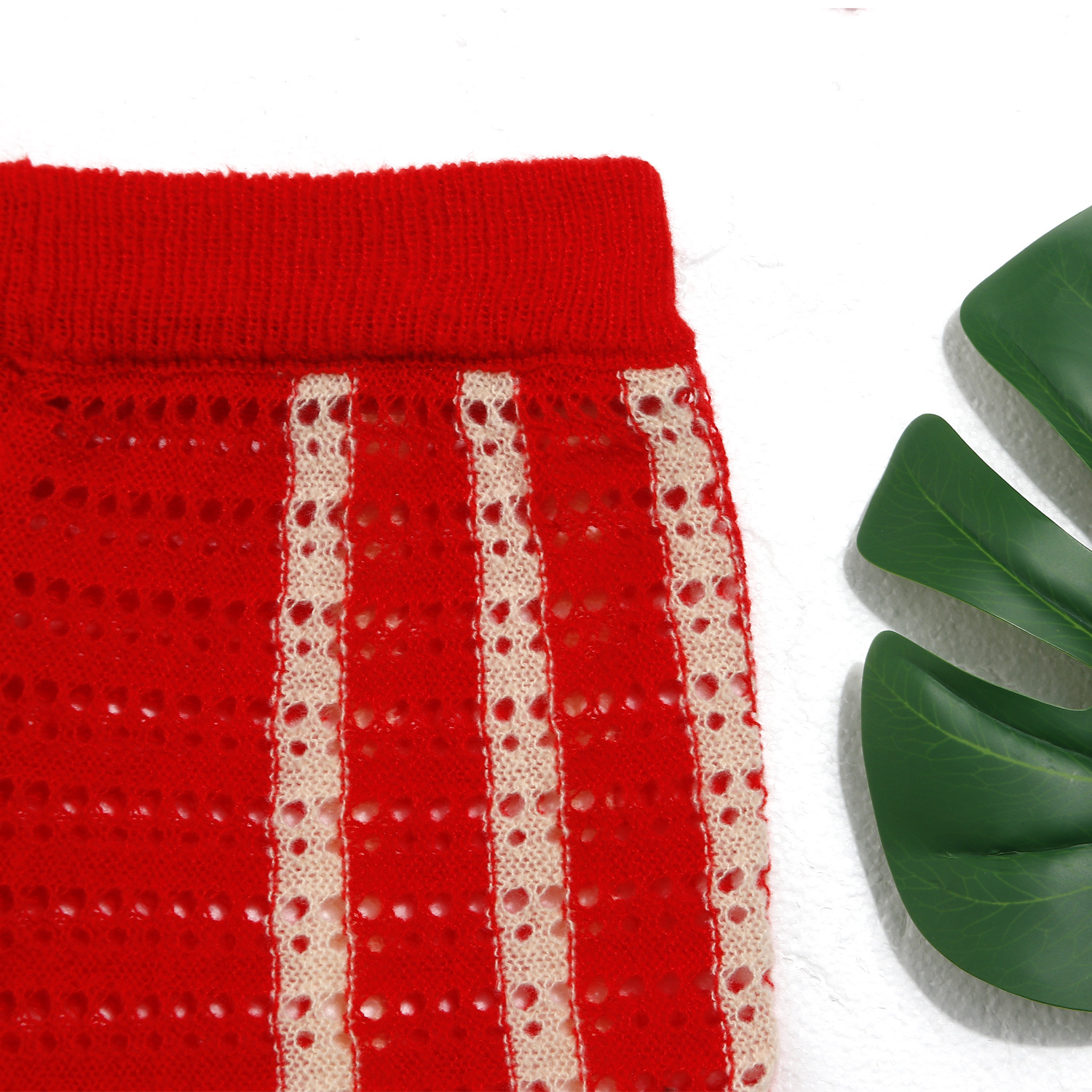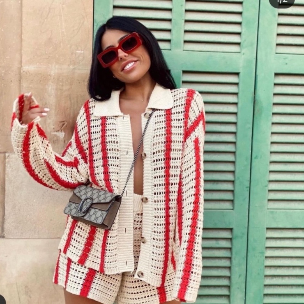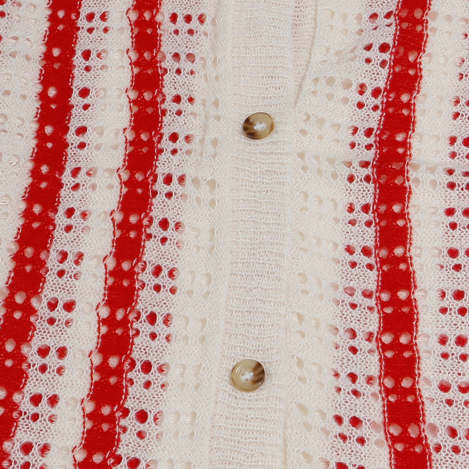 High Collared Slim Cardigan Button Stripe Two Piece Sweater