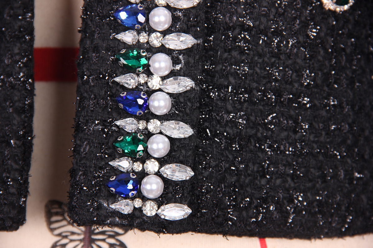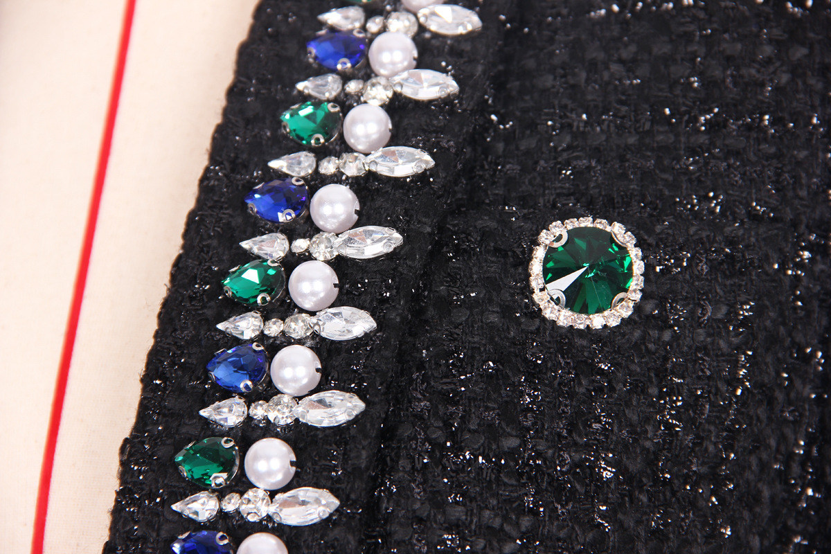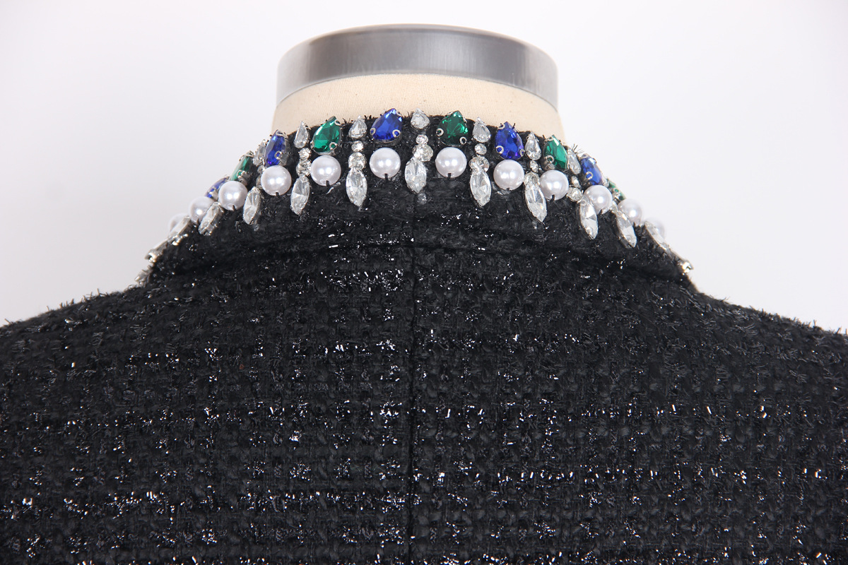 High Quality Lady Temperamental Office Black Premium Heavy Industry Beads Top Woolen Cardigan Coat
