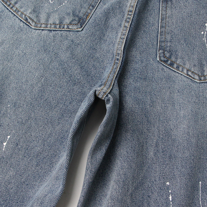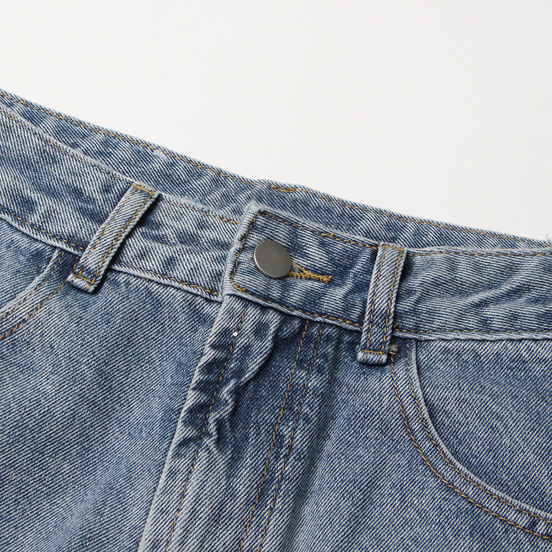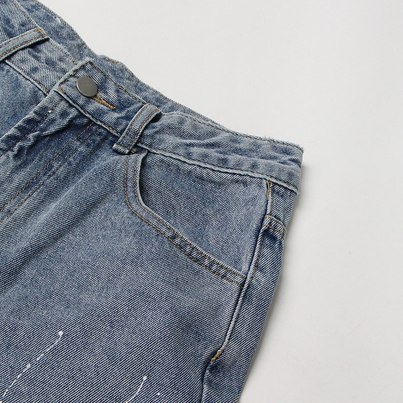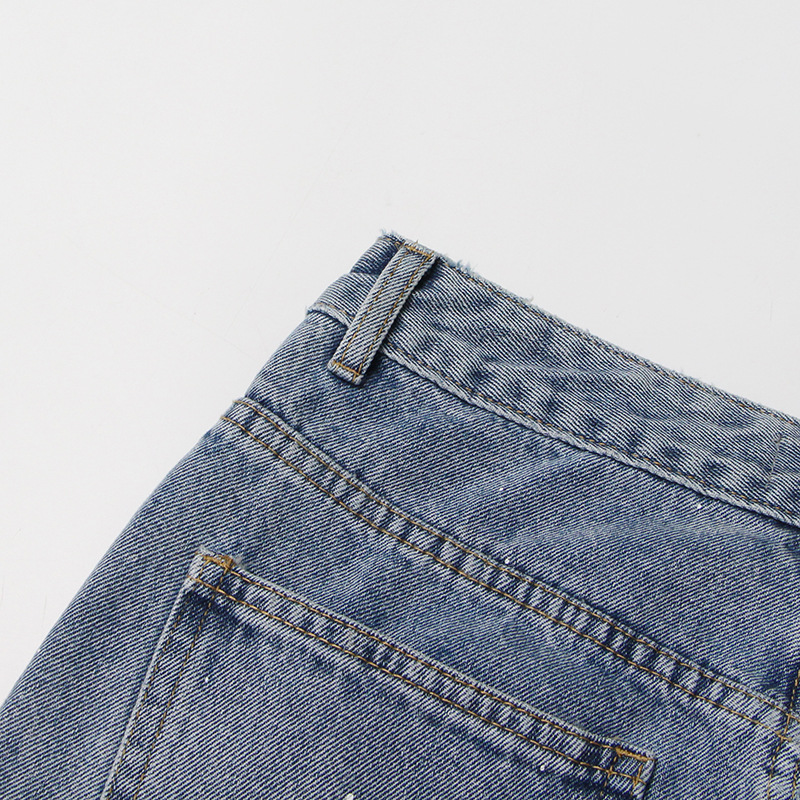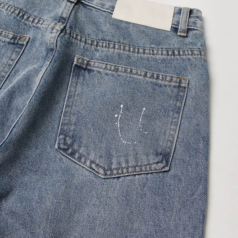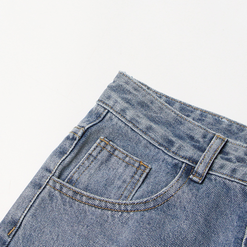 High Slimming Knee Stitching Beltable Contrast Color Jeans Straight Leg Pants Trousers