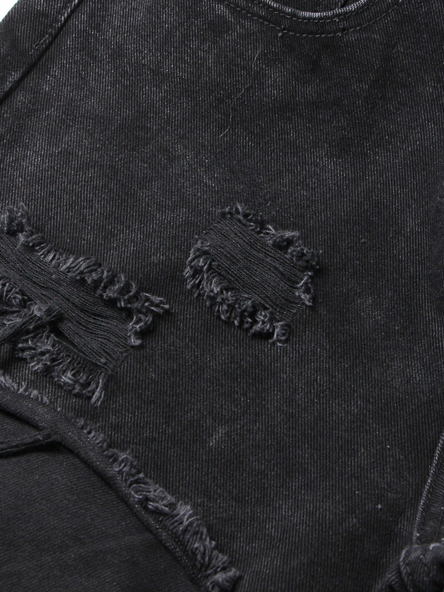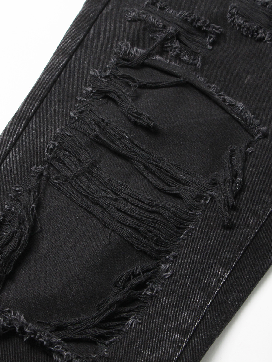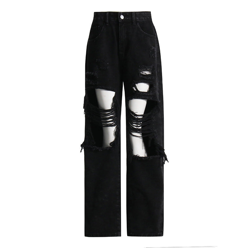 High Waist Denim Straight Leg Pants Loose Hole Black Slimming Drape Wide Leg Mop Jeans