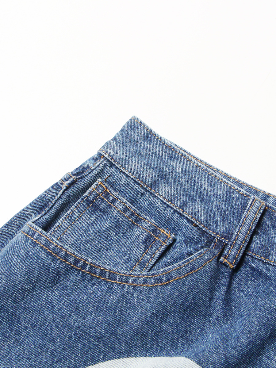 High Waist Jeans Draping Retro Wide Leg Straight Leg Pants Printed Love Slimming Loose Jeans