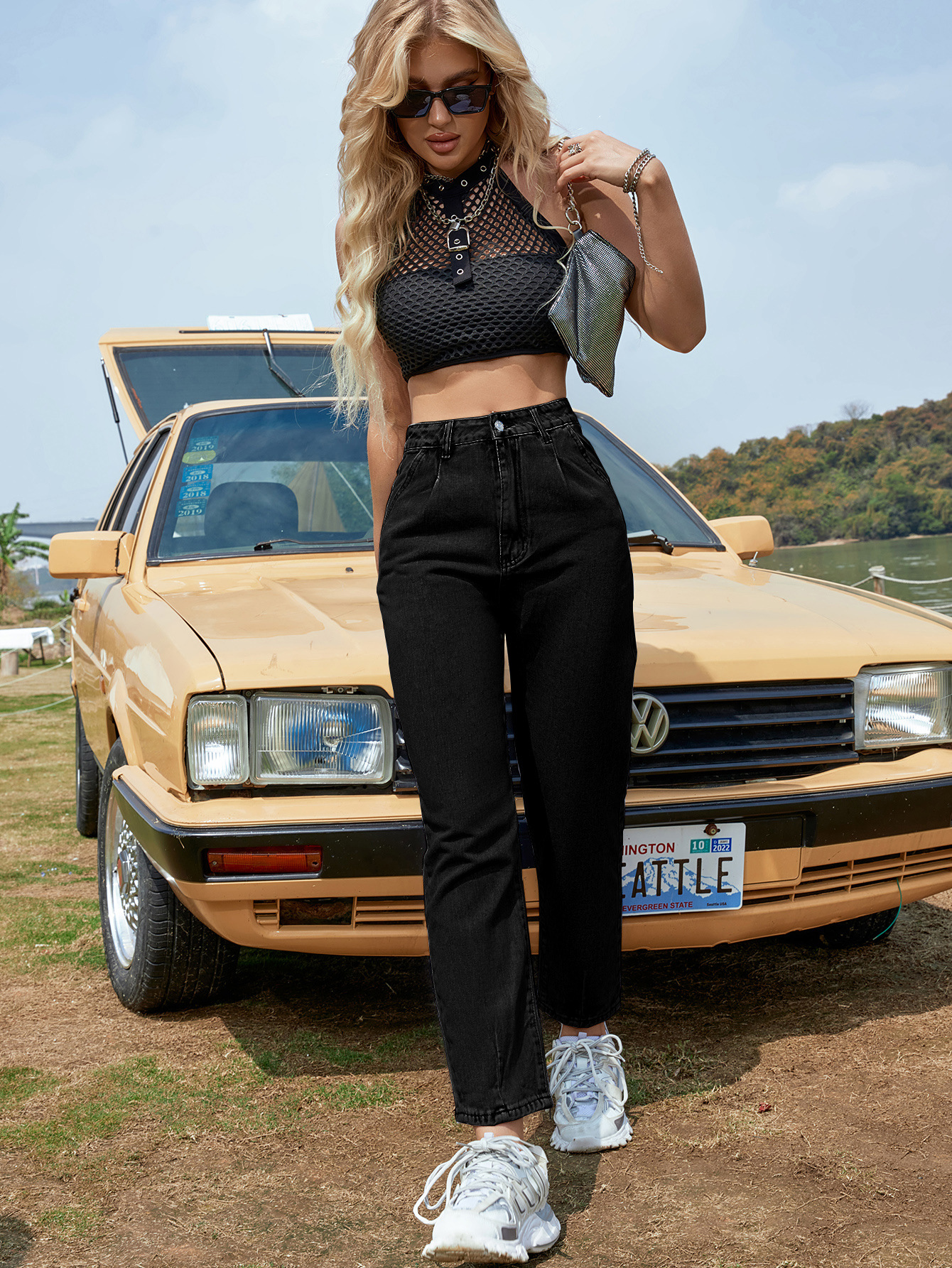 High Waist Straight Loose All-Match Skinny Denim Trousers
