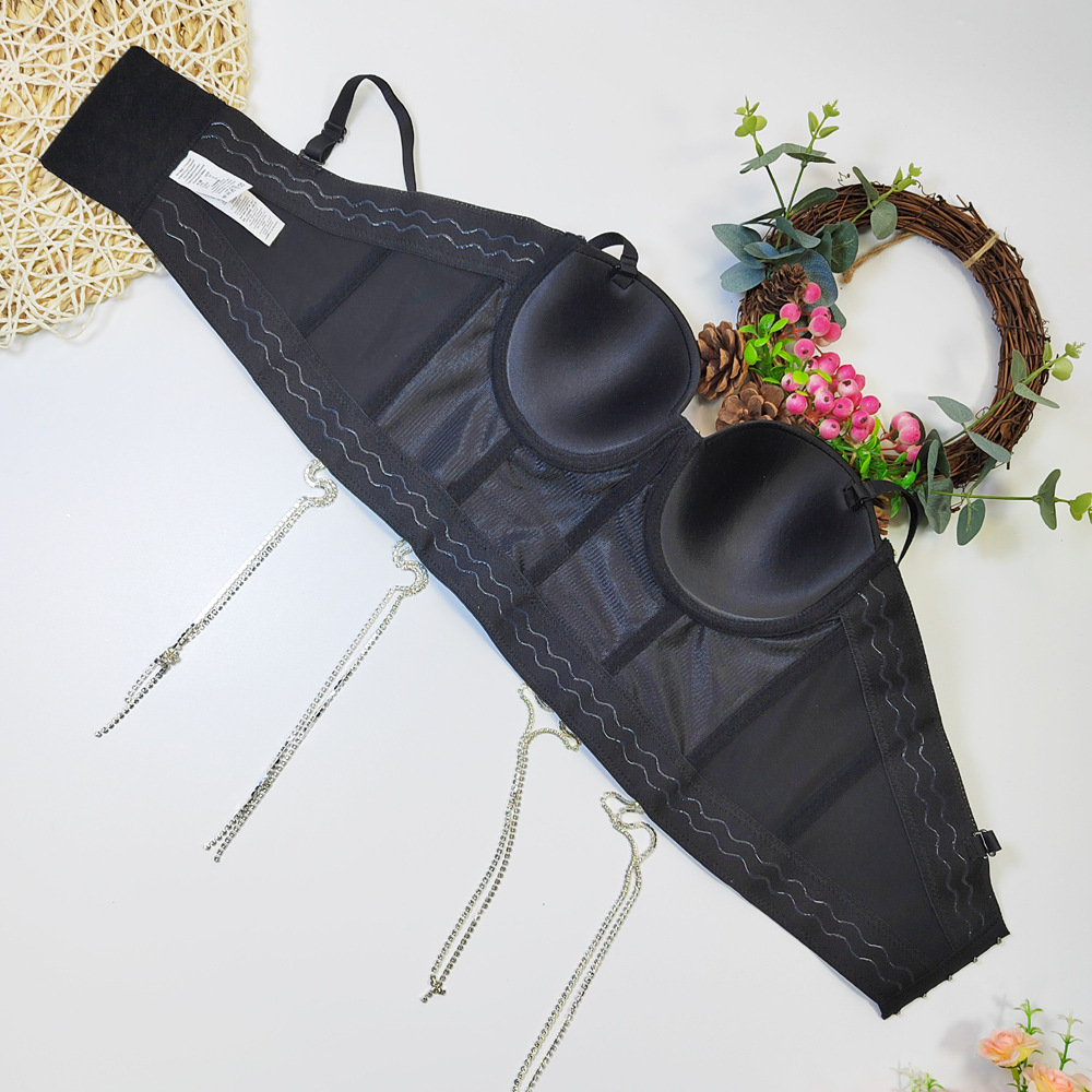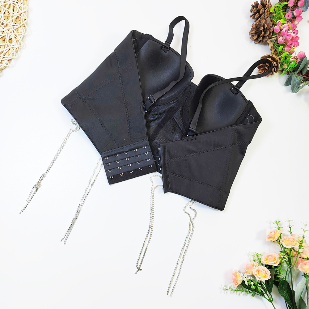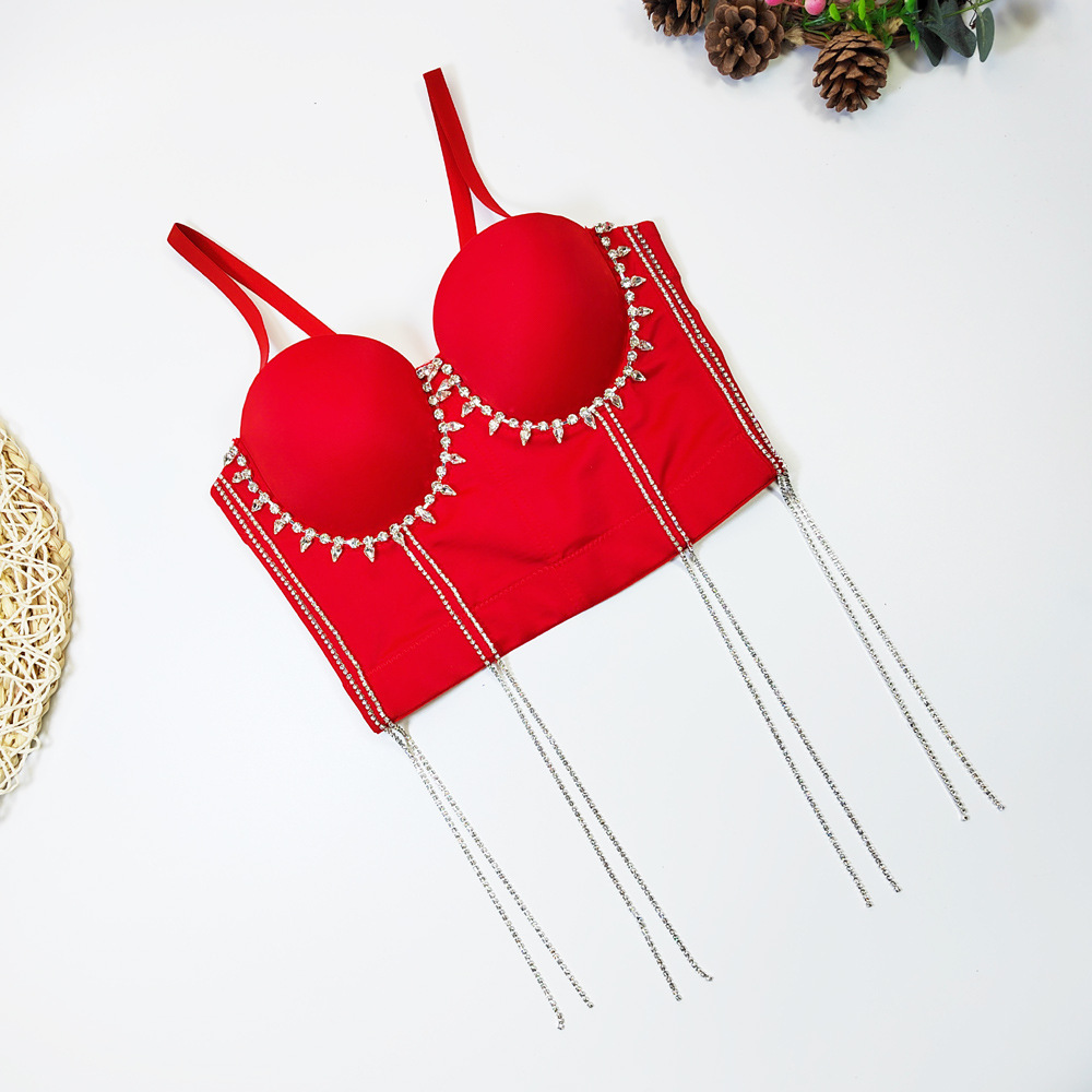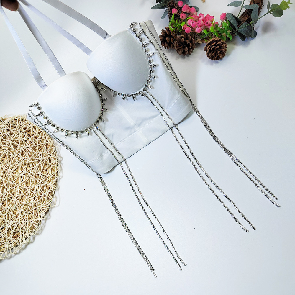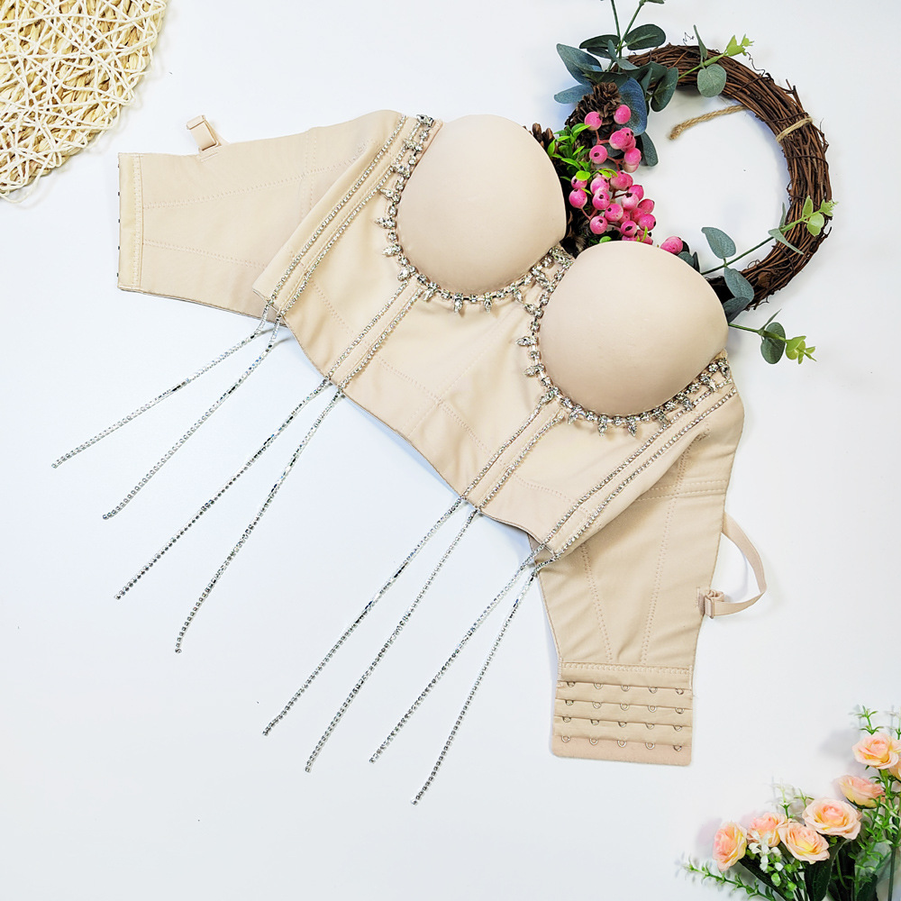 Hip Hop Belly Dance Performance Tube Top Nightclub Body Shaping Boning Corset Tassel Rhinestone Beaded Sling