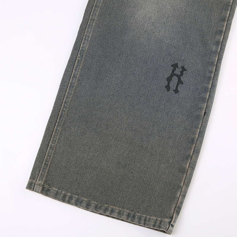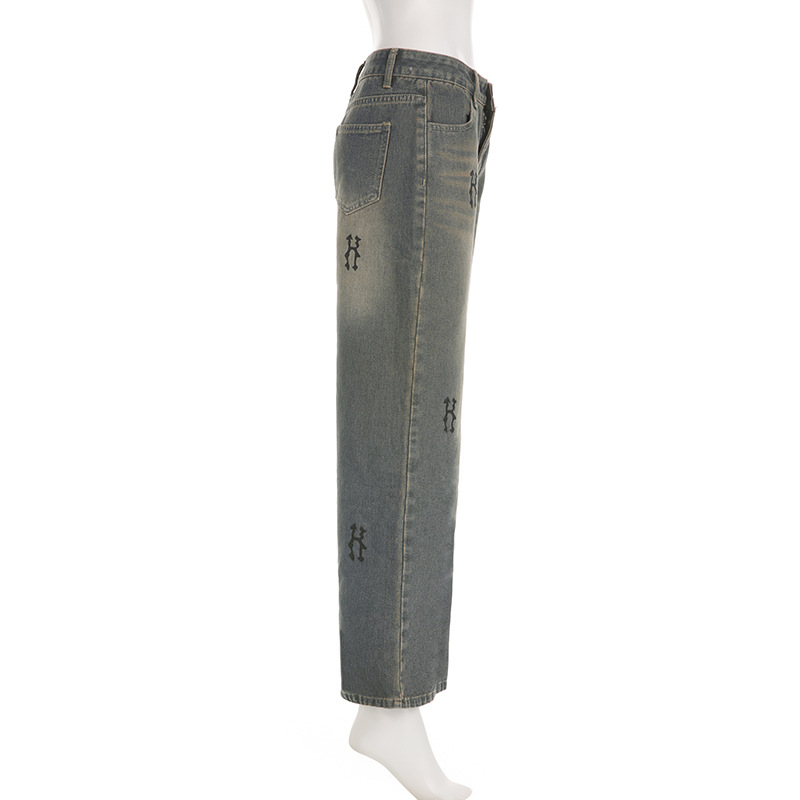 Hip Hop Low Waist Retro Distressed Printed Simple Letter Graphic Jeans Loose Street Casual Wide Leg Pants Trousers