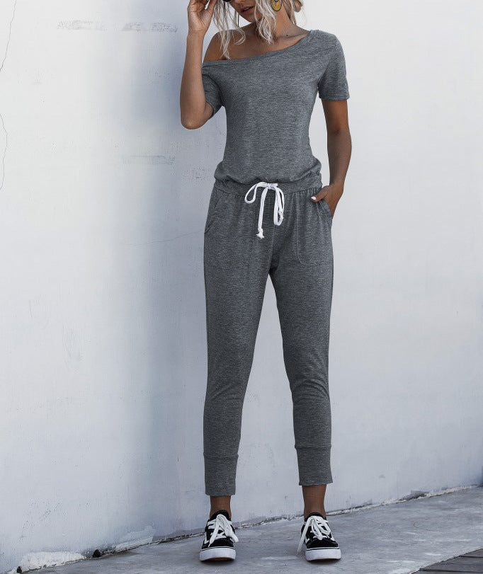 Home Jumpsuit Casual Waist Loose Sports Pocket Solid Color Jumpsuit