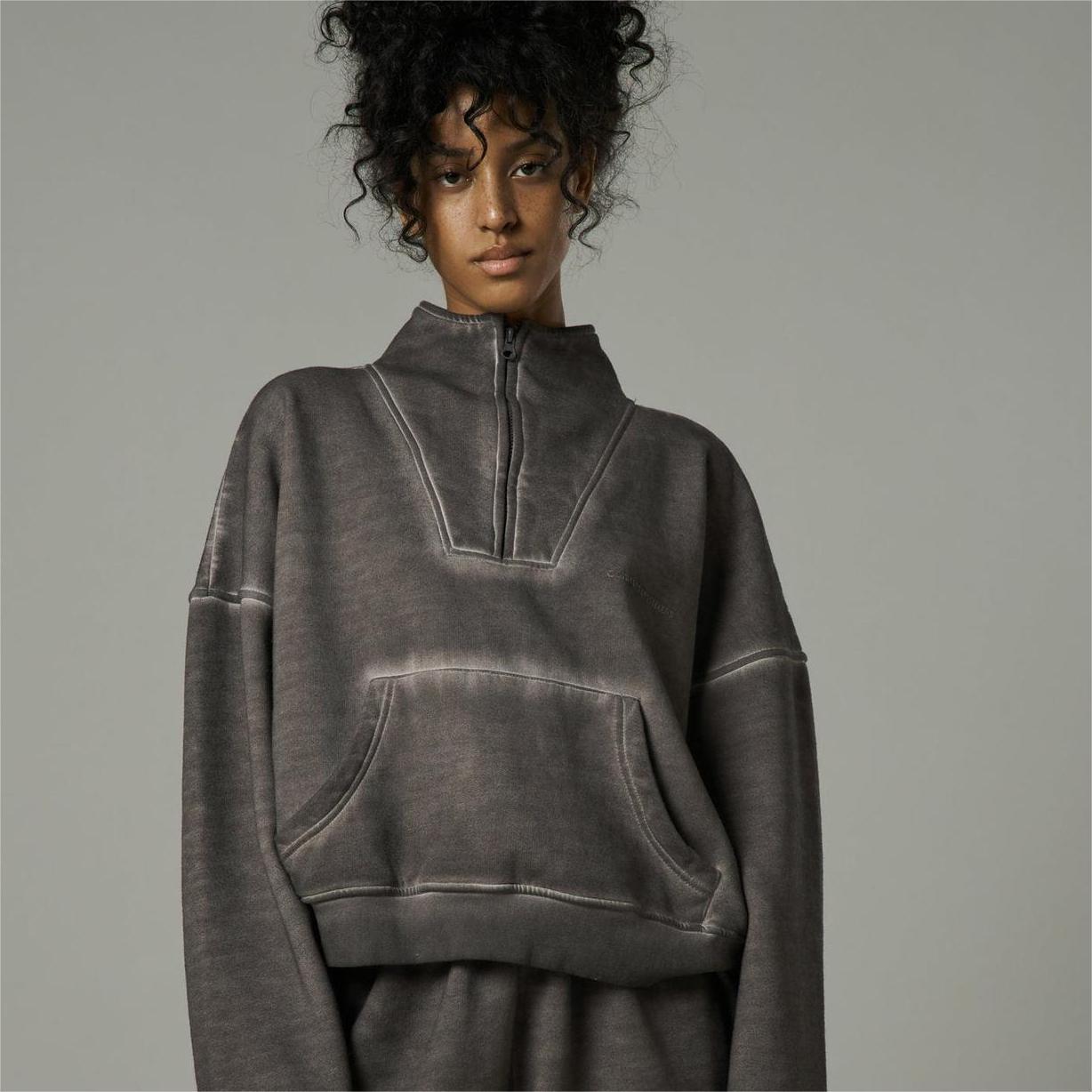 Hoodie Trendy BrLazy Feeling Loose Street Distressed Half Zipper Coat Winter