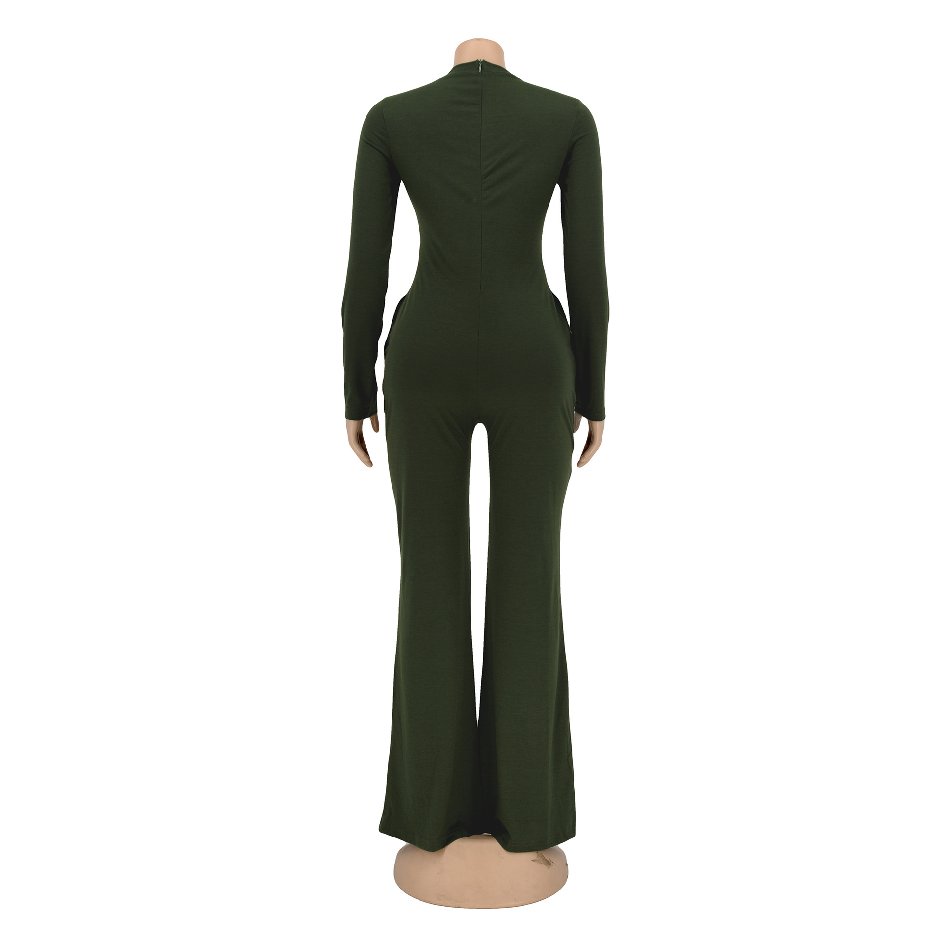 Jumpsuit Bell Bottom Pants Tight V neck Long Sleeve Jumpsuit Winter