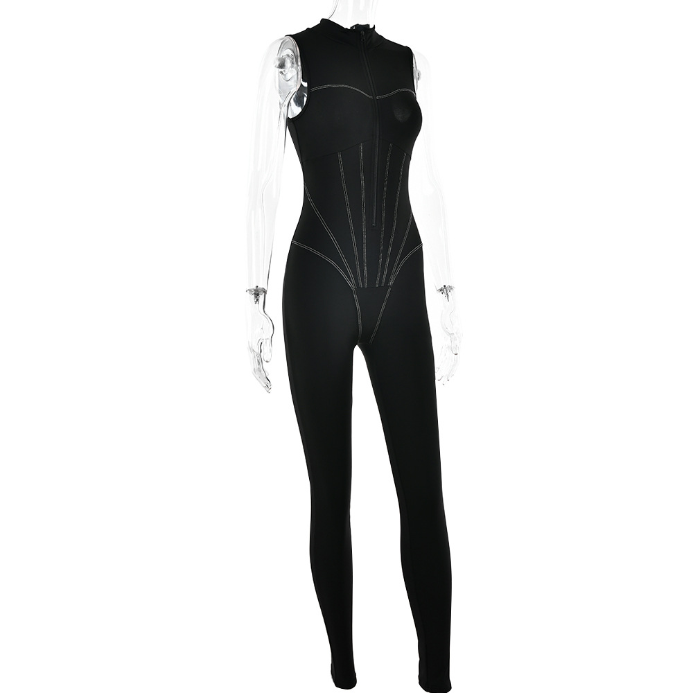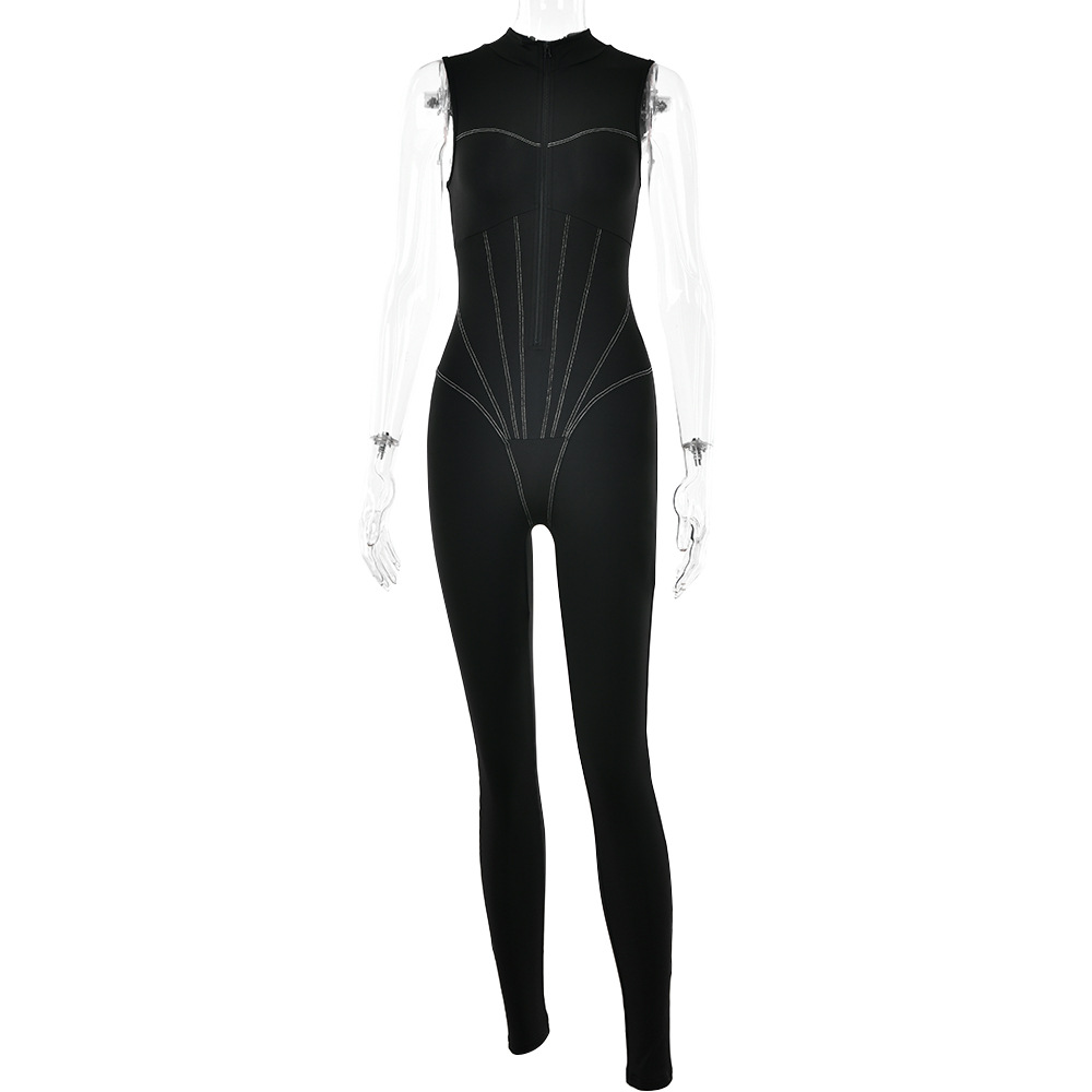 Jumpsuit Tight Sleeveless Zipper Sports High Elastic Jumpsuit Trousers