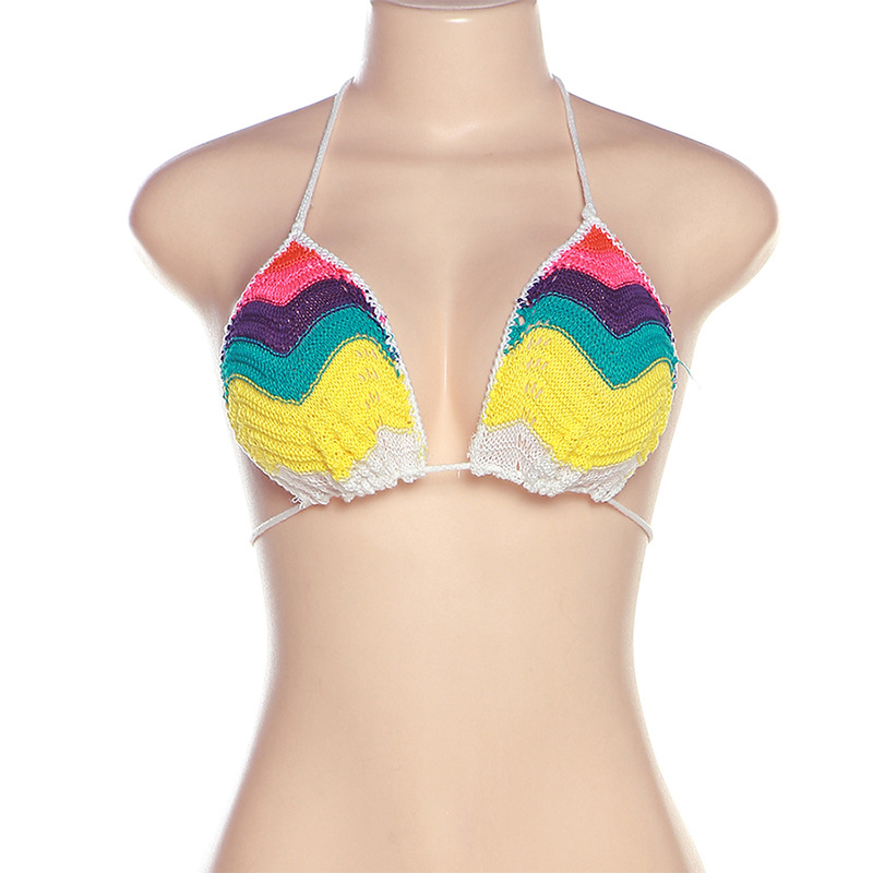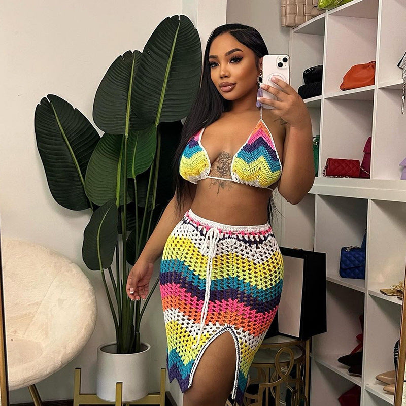 Knitted Contrast Color Cutout Lace up Vest Skirt Sets