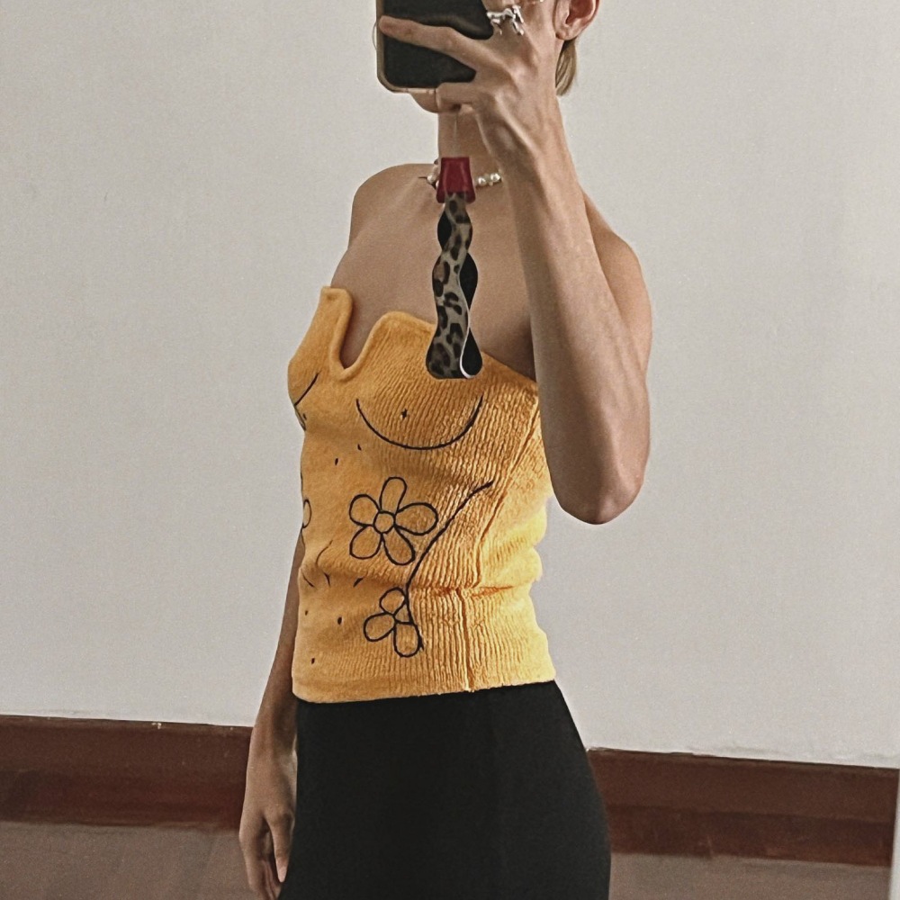 Knitted Floral Embroidered Wrapped Chest Short Top Vest Outer Wear