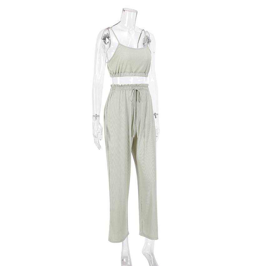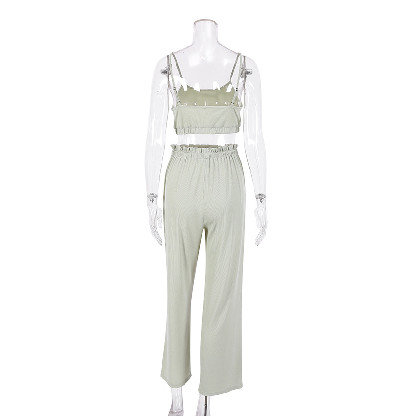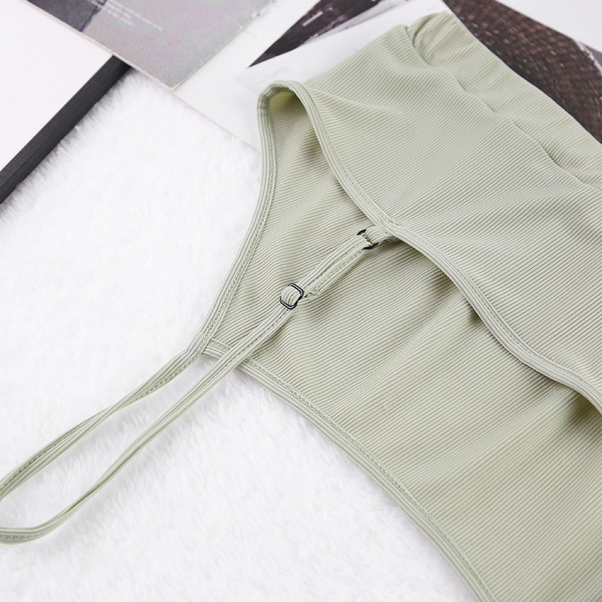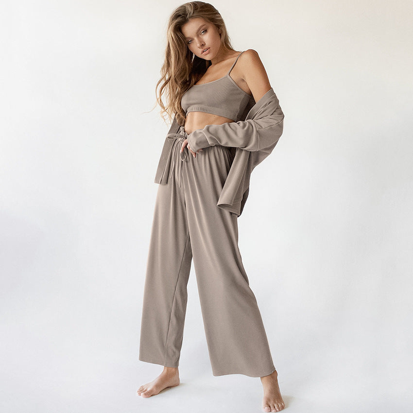 Knitted French Ice Silk Rib Chest Wrap Underwear Comfortable Pajamas Three Piece Home Wear