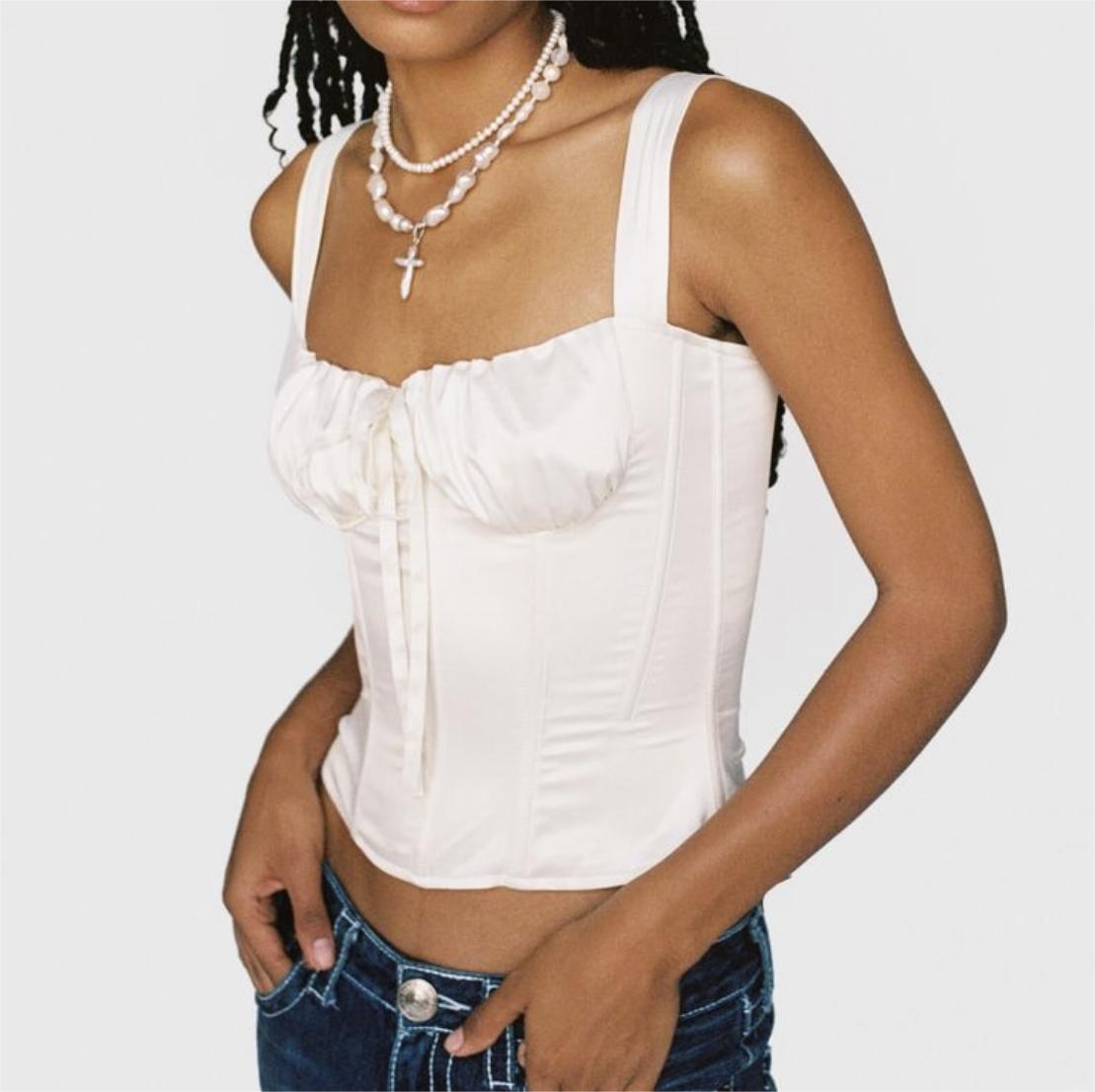 Knitted Lace up Bow Suspenders Vest White Liner Boning Corset Waist Top