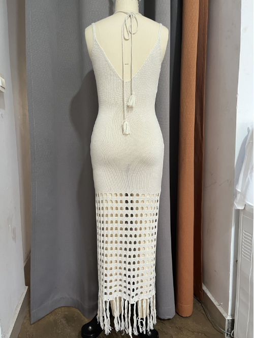 Knitted Tassel Beach Blouse Halter Seaside Holiday Sun Protection Beach Cover Up