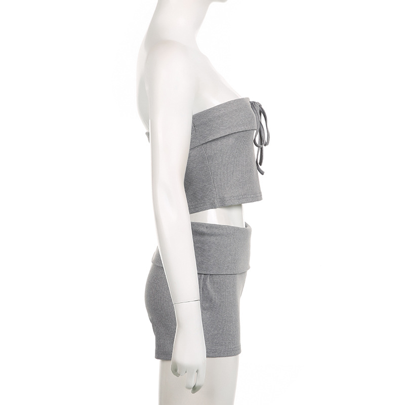 Knitted Thread Casual Tube Top Short Type Two Piece Set Lace-up Top Running Sports Super Short Set