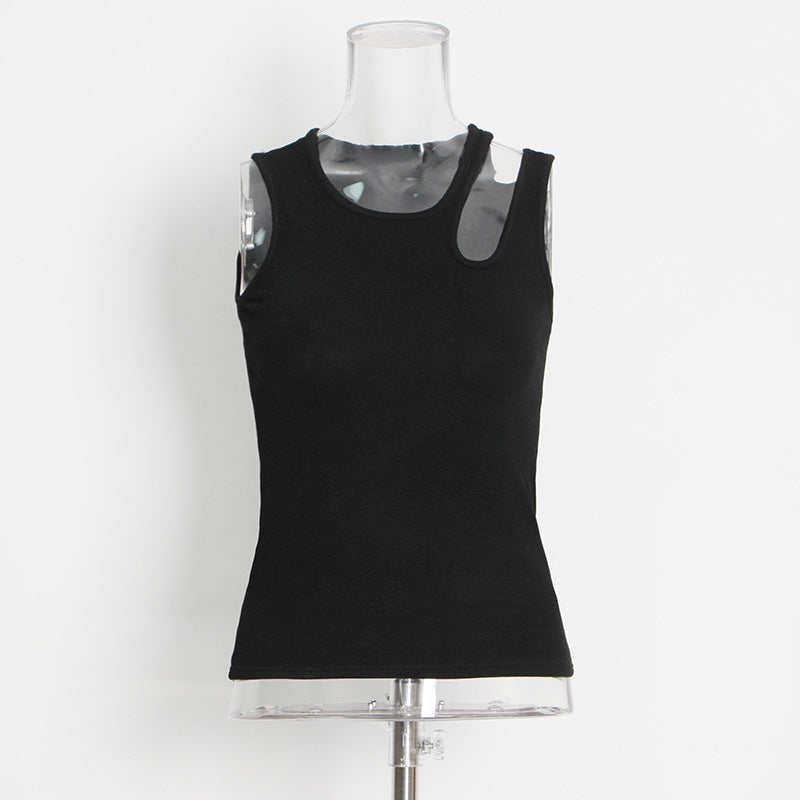 Knitted Vest Niche round Neck Hollow Out Hollow Out Cutout out Sleeveless Inner Match Top