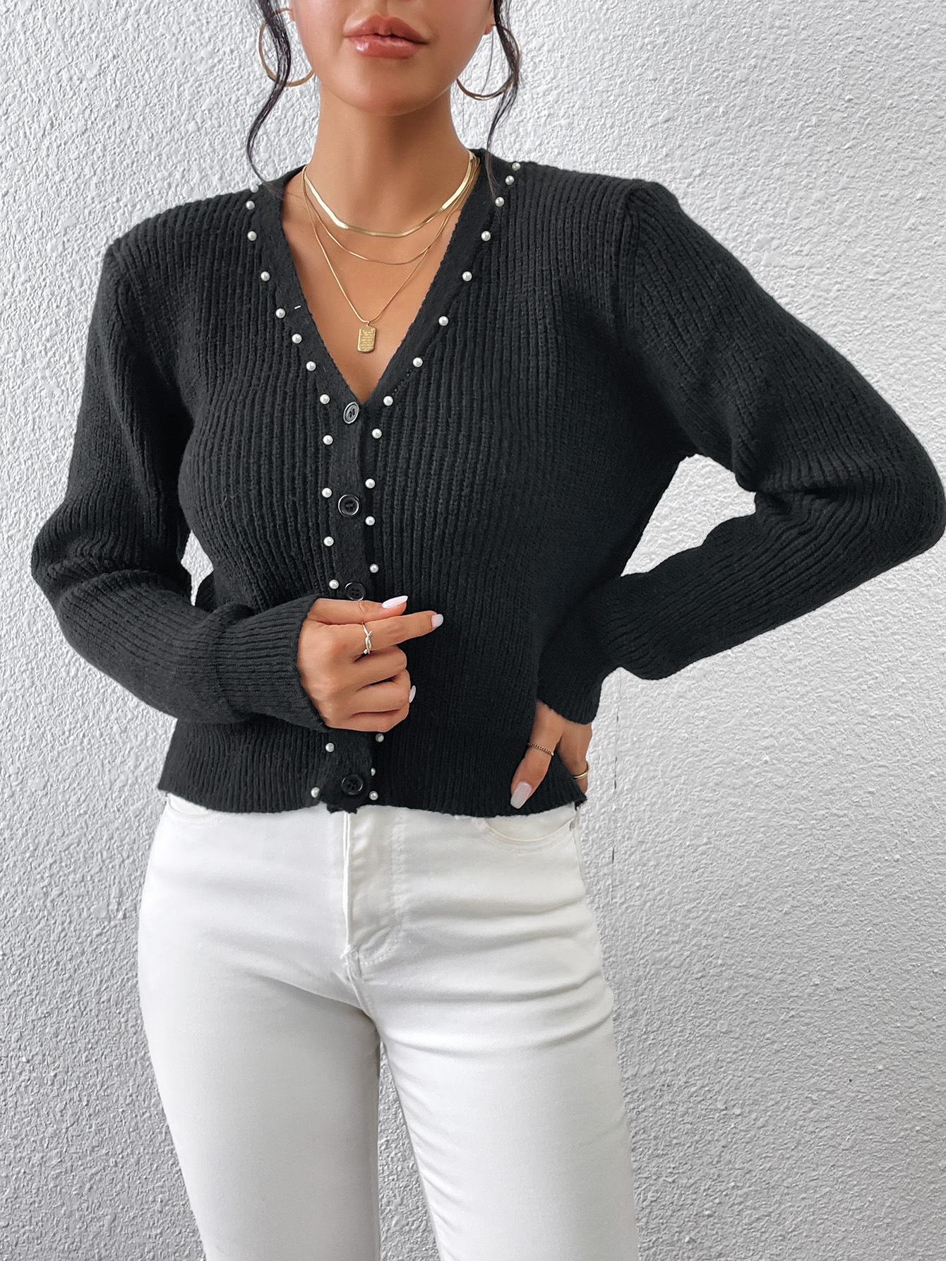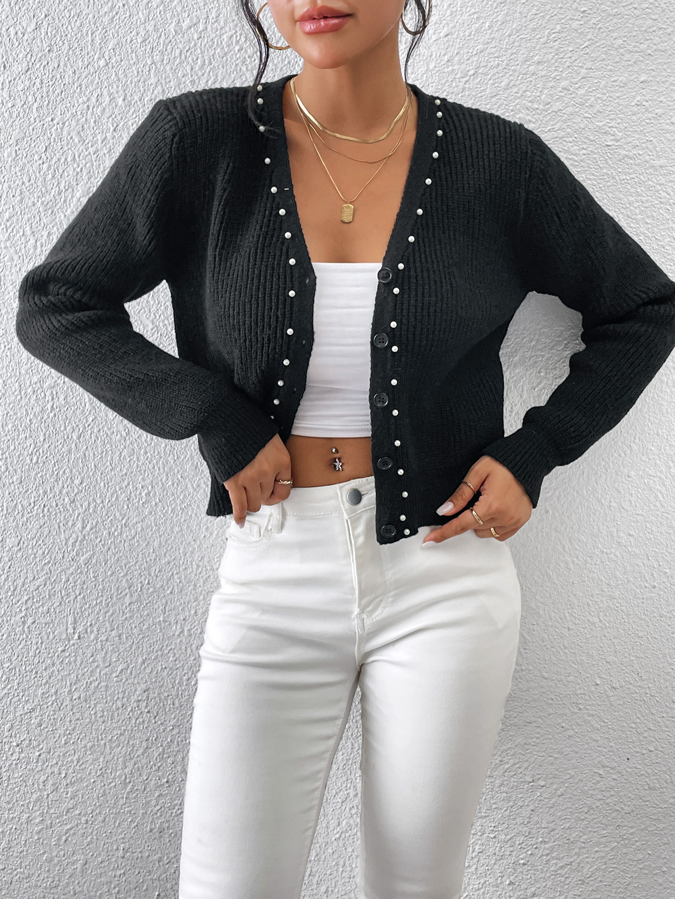 Knitwear Collar Pearl Short Coat Cardigan Sweater
