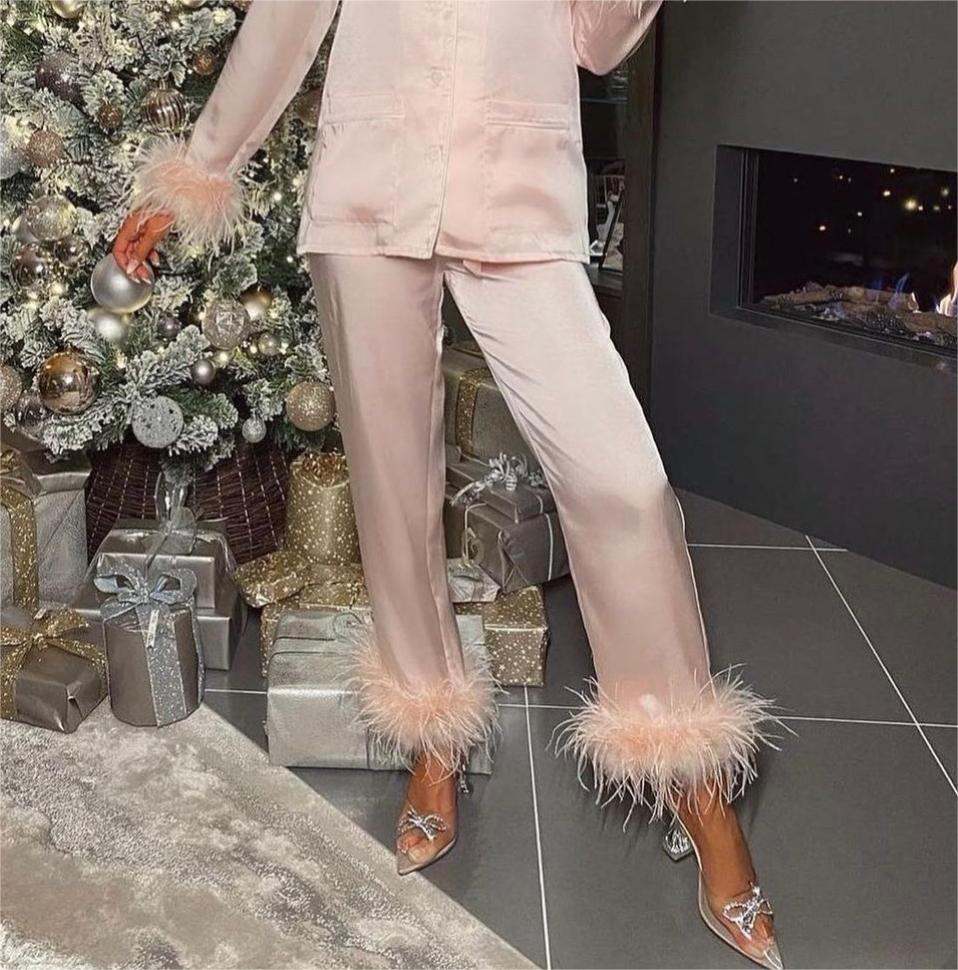 Lace up Feather Decoration Casual Straight Pants Trousers & TOP F00122614